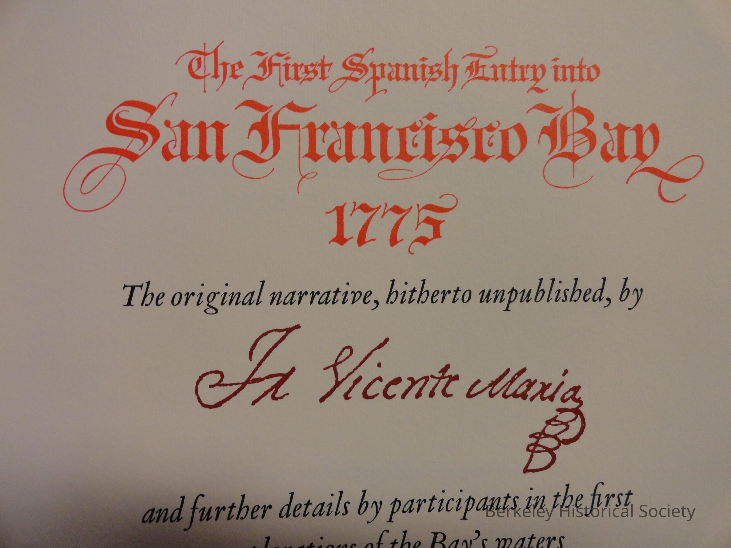 The first Spanish entry into San Francisco Bay, 1775Entry/Object ID
