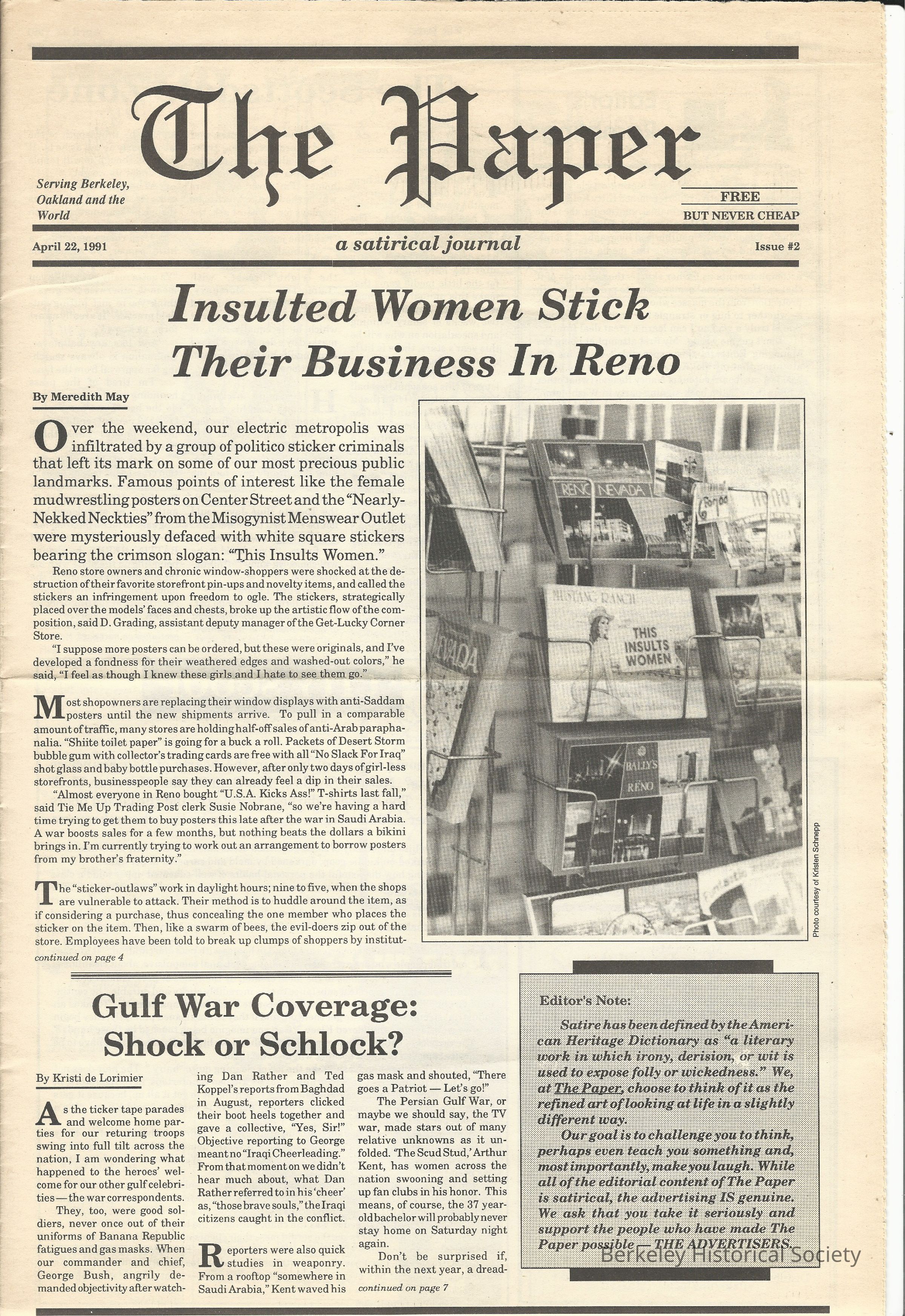 "A satirical journal." Kate Slott, managing editor. BHS has: 4/1, 4/21, 5/13/ 1991