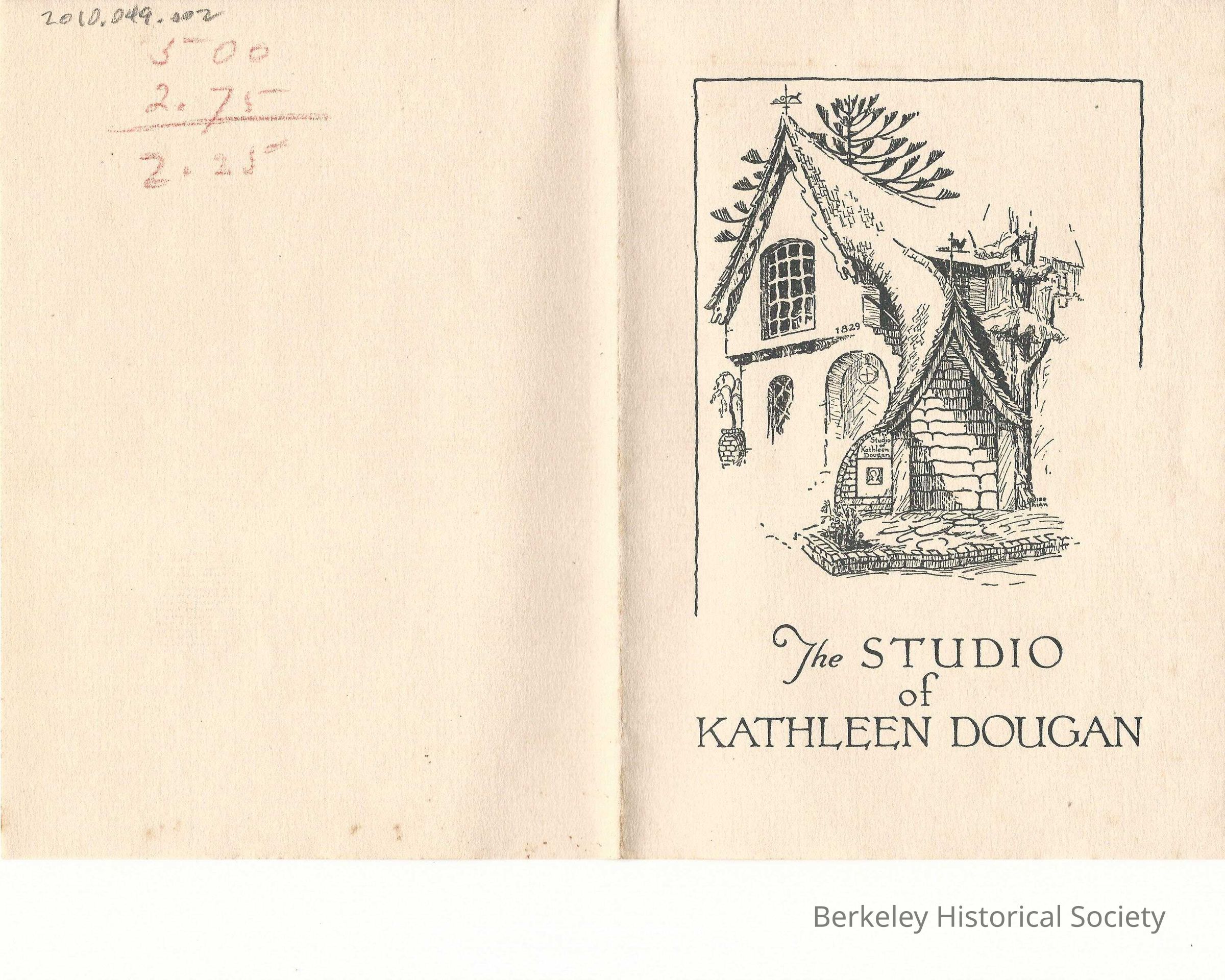 Folded sheet announcing the opening of her photographic studio at 1829 Spruce Street in Thornberg Village, more popularly known now as Normandy Village.
