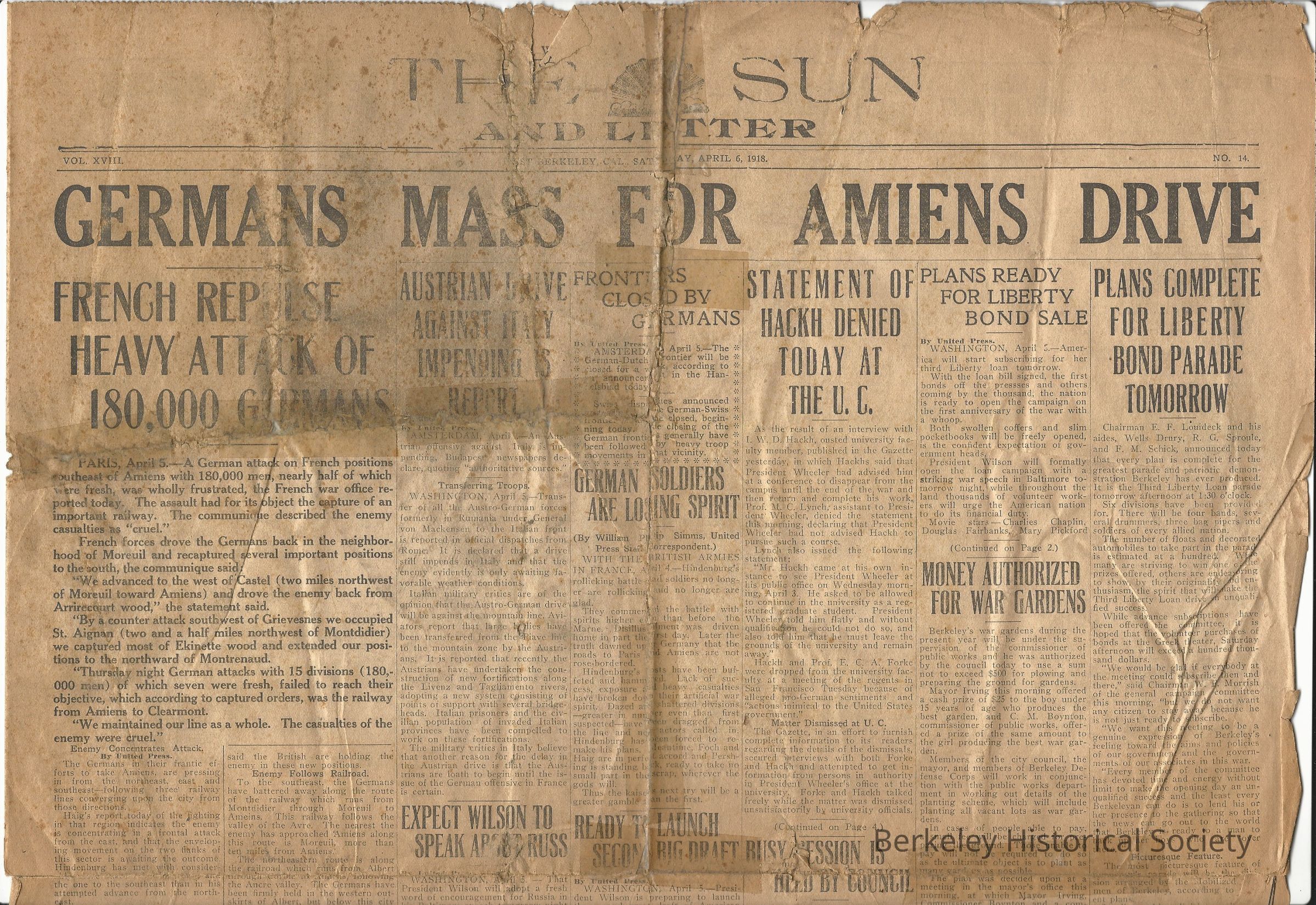 BHS has: April 6, 1918. NOTE: shelved in Archives oversize A.