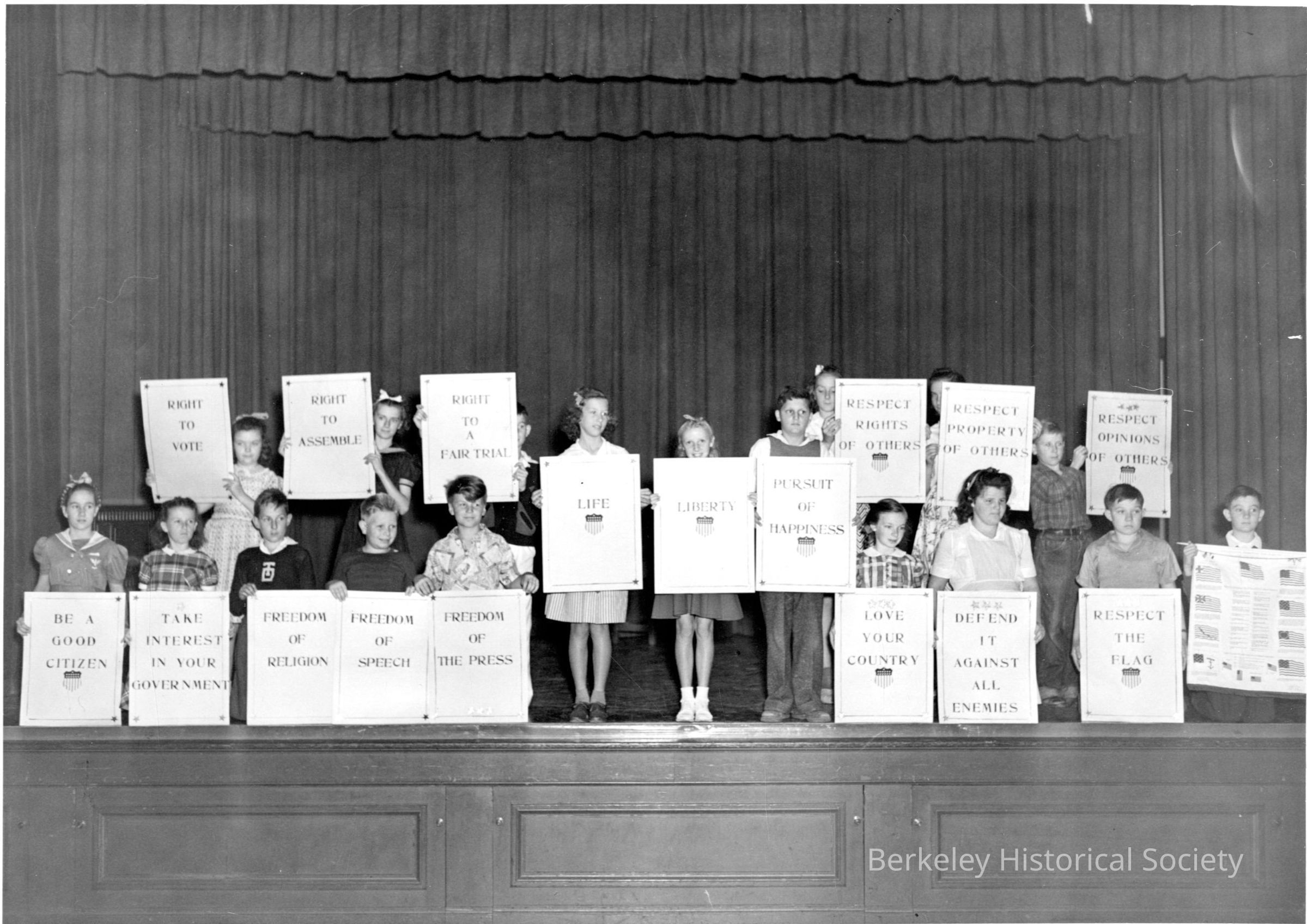 Students at Thousand Oaks School present the Bill of Rights on the auditorium stageOther Names and Numbers