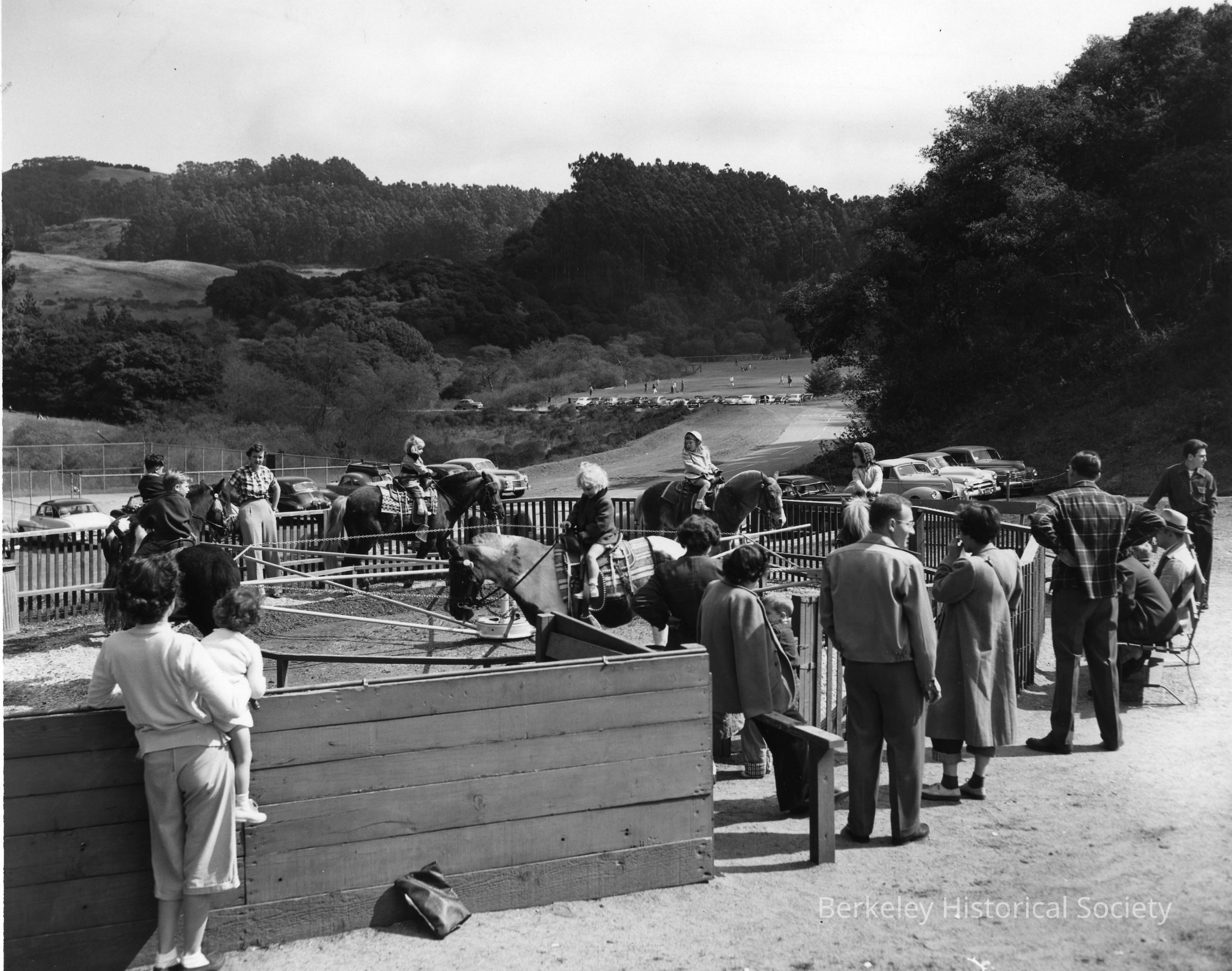 Children's pony ride; adults watching.