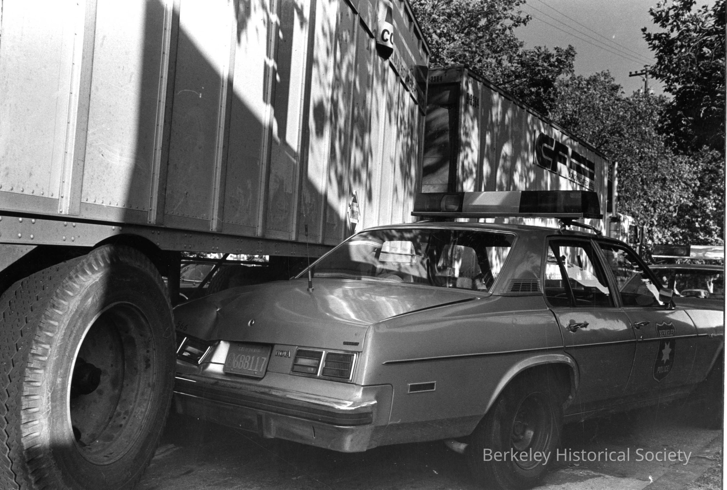 Traffic accident Police car struck by tractor trailer rig