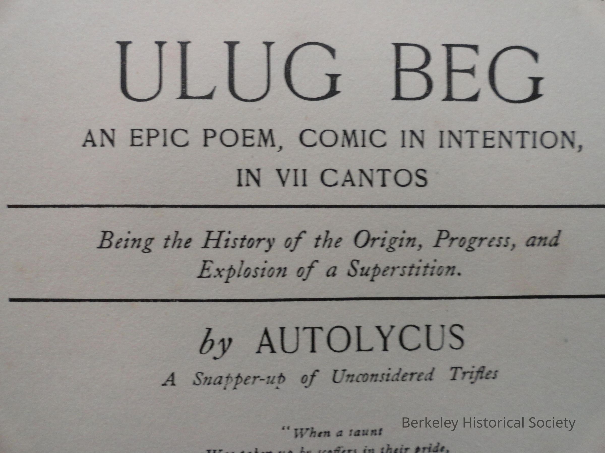 Ulug Beg An Epic Poem, Comic in Intention, in VII Cantos (PS3503.A196U4 1923)Entry/Object ID