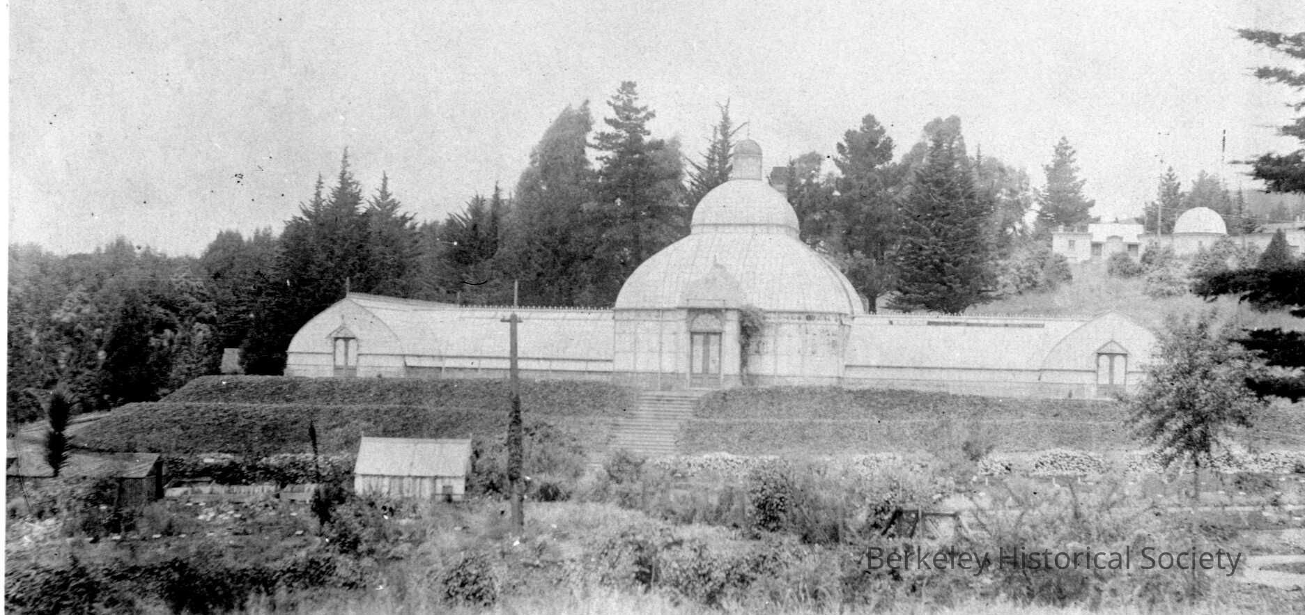 UC Conservatory, 1900 1894 "Plant house" for agricultural studies on north slope of central glade opposite Doe library; razed (1924) to clear area for Haviland Road.
