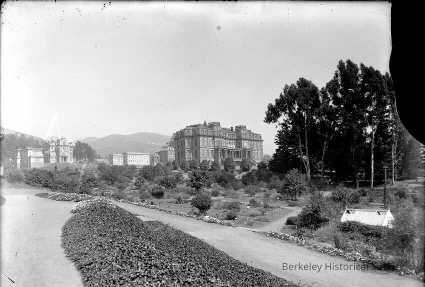 View across Botanical Garden; North Hall and other buildings in background.