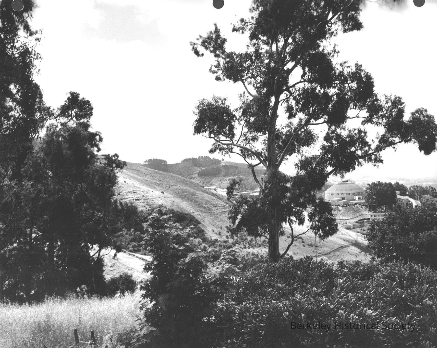 Berkeley Hills, laboratory building through trees.