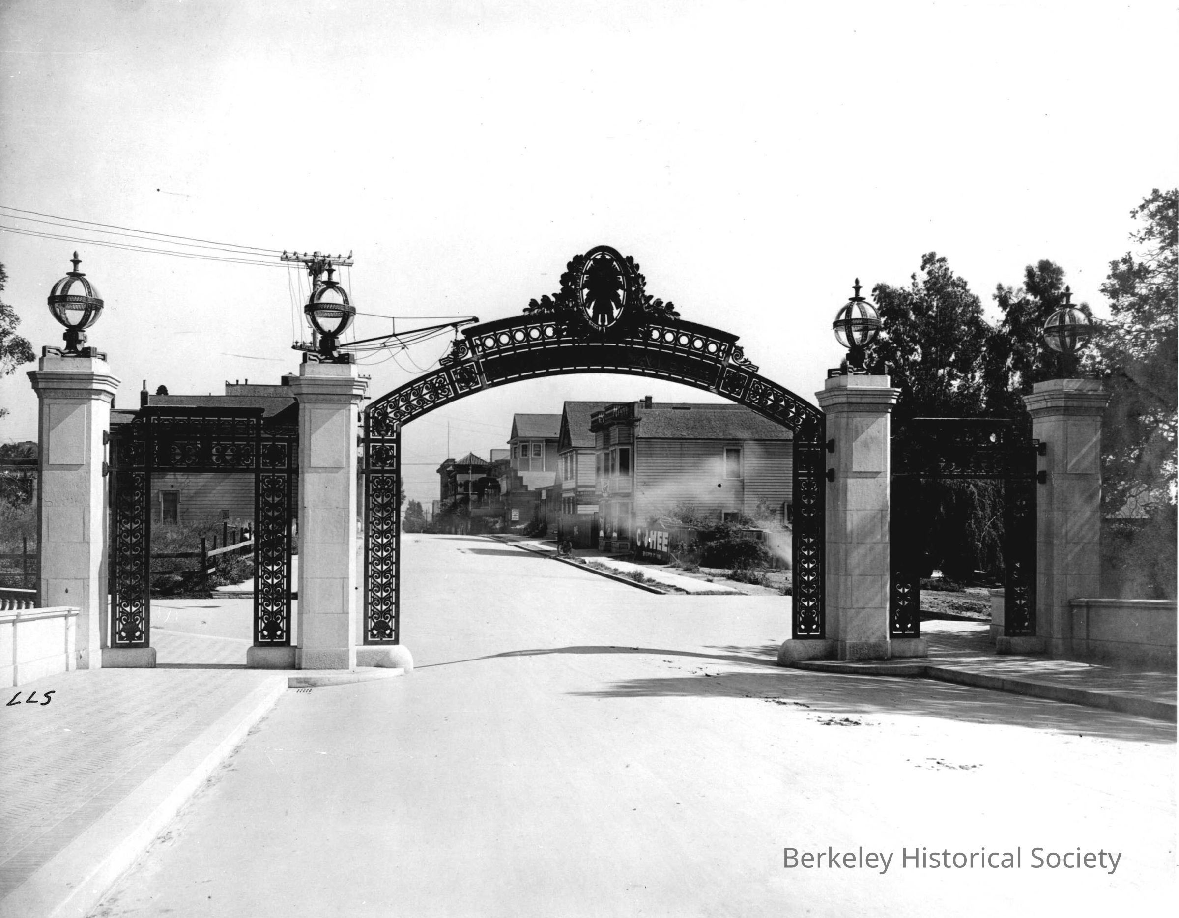 Sather Gate, looking south to Telegraph Avenue, ca. 1910.