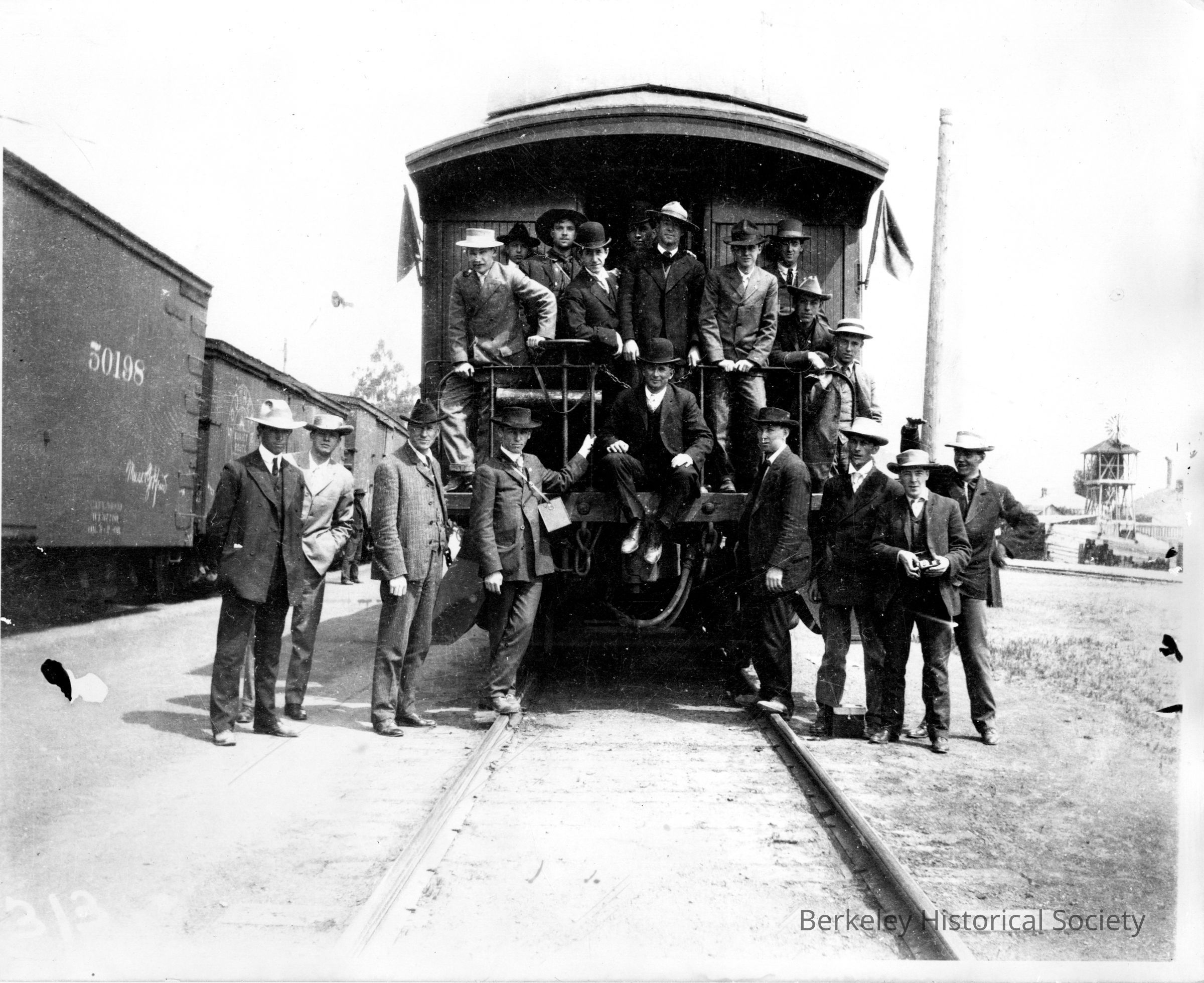 Mining students on rear car of train. Location uncertain.Other Names and Numbers