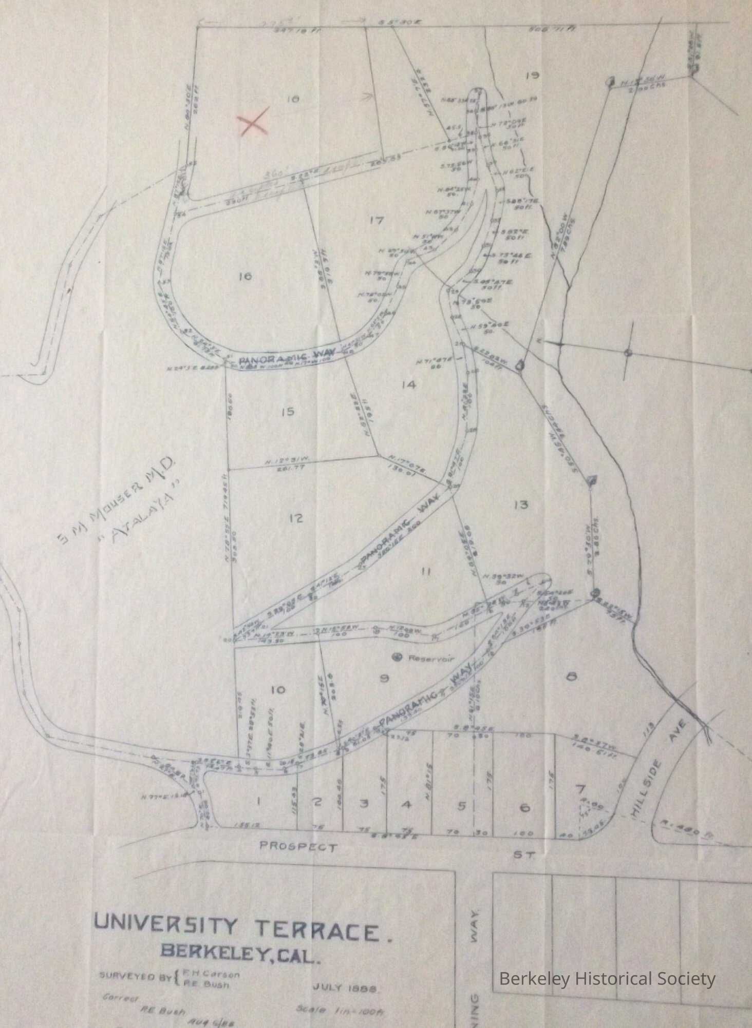 Surveyed by F.H. Carson, R.E. Bush. July 1888. Correct, R.E. Bush Aug. 6, 1888; Filed Aug 14, 1888, Book 10, Page 30Lexicon