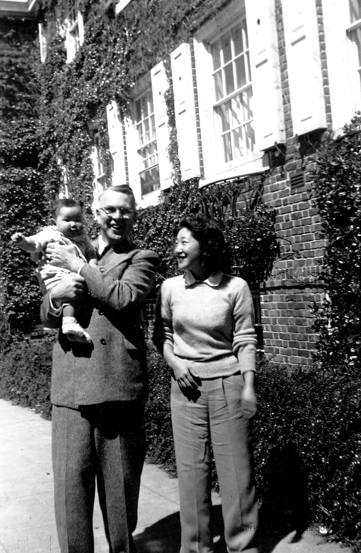 On Channing Street side of church at time of Japanese deportation, Loper holding baby Patty YoshidaMade/Created