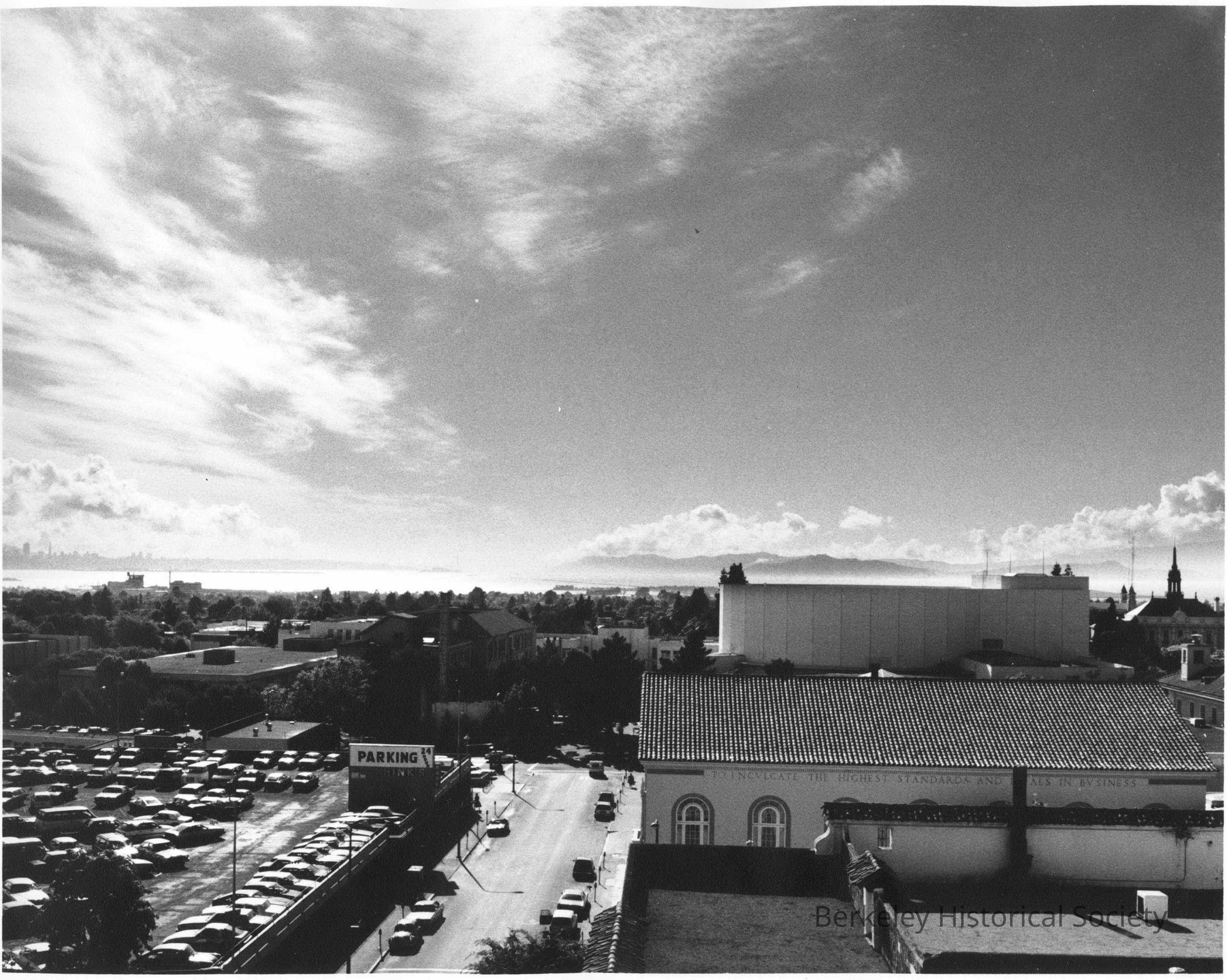 Panorama - downtown Berkeley, Hink's roof and parking structure.