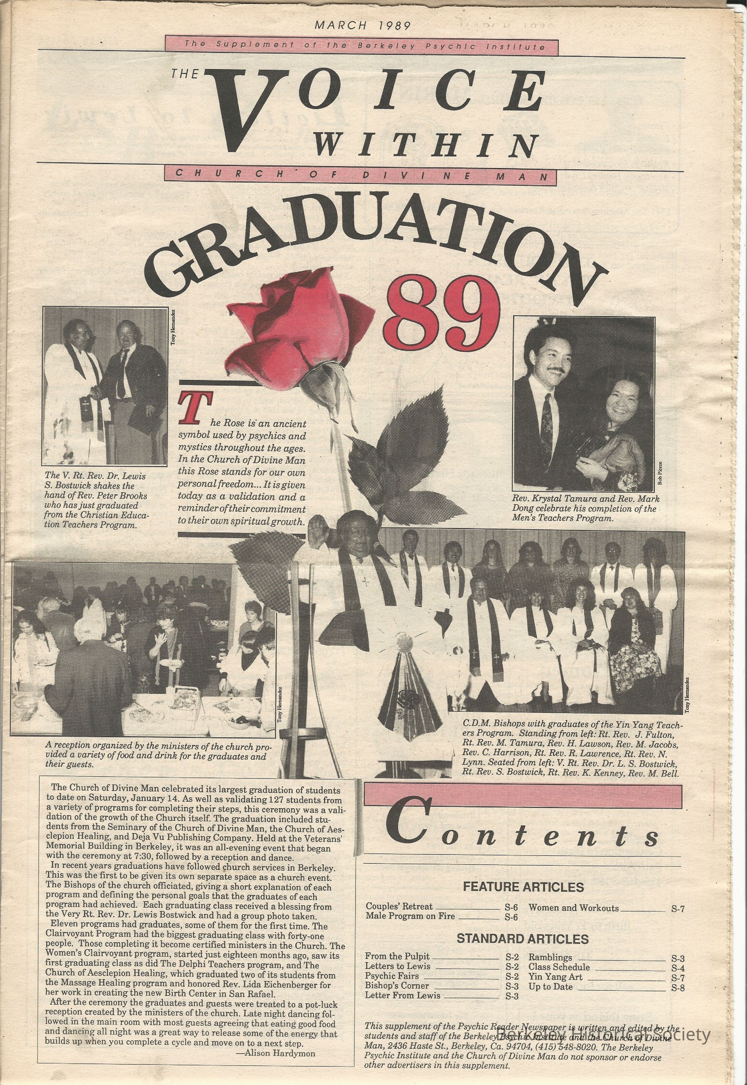 "The supplement of the Psychic Reader Newsleter is written and edited by the students and staff of the Berkeley Psychic Institute and the Church of Divine Man" BHS has: March, July 1989.