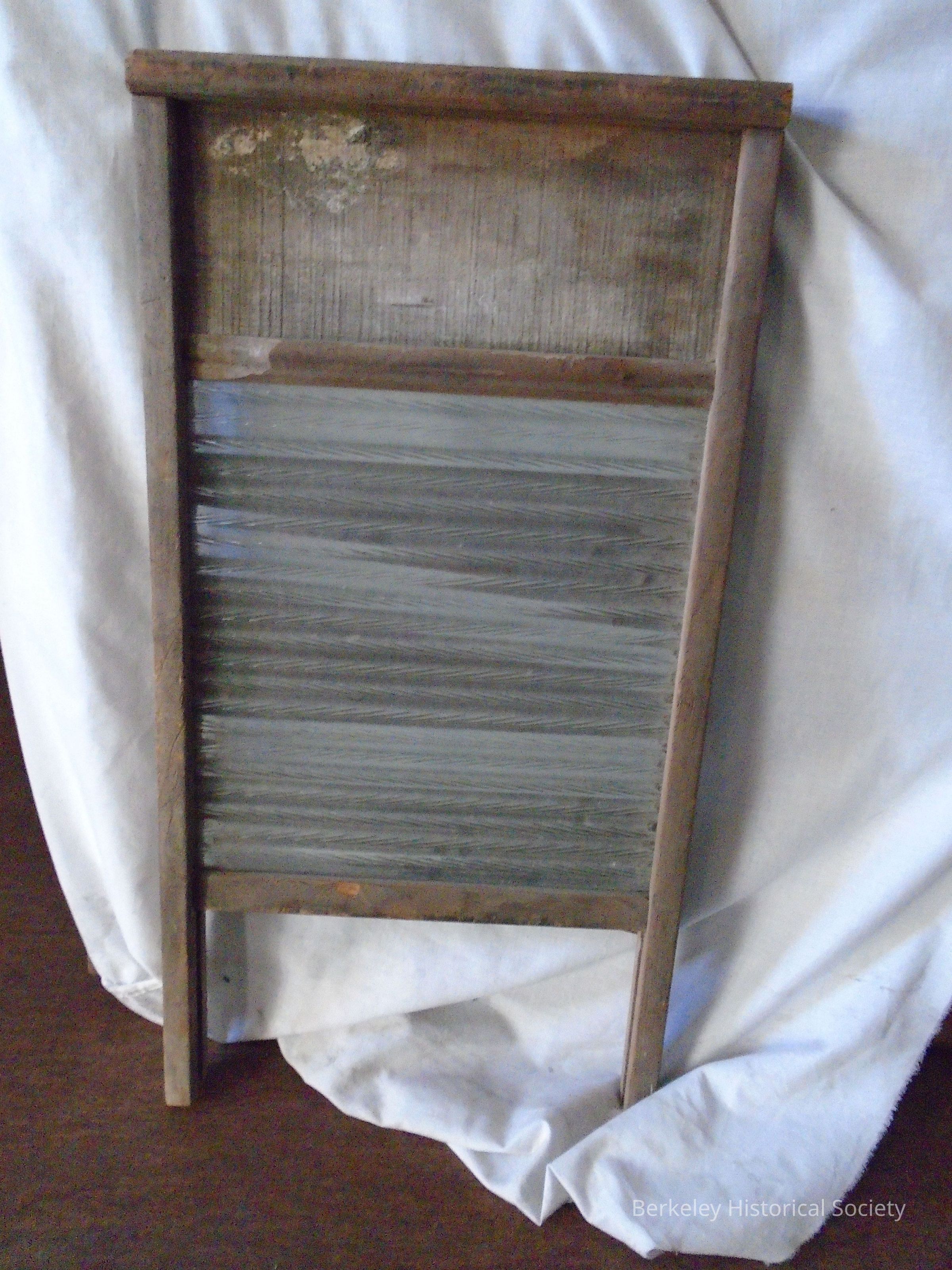 Glass washboard in wooden frame. Wood backing and legs. Shirley Dean (mayor of Berkeley 2000-5) found in a Berkeley home.