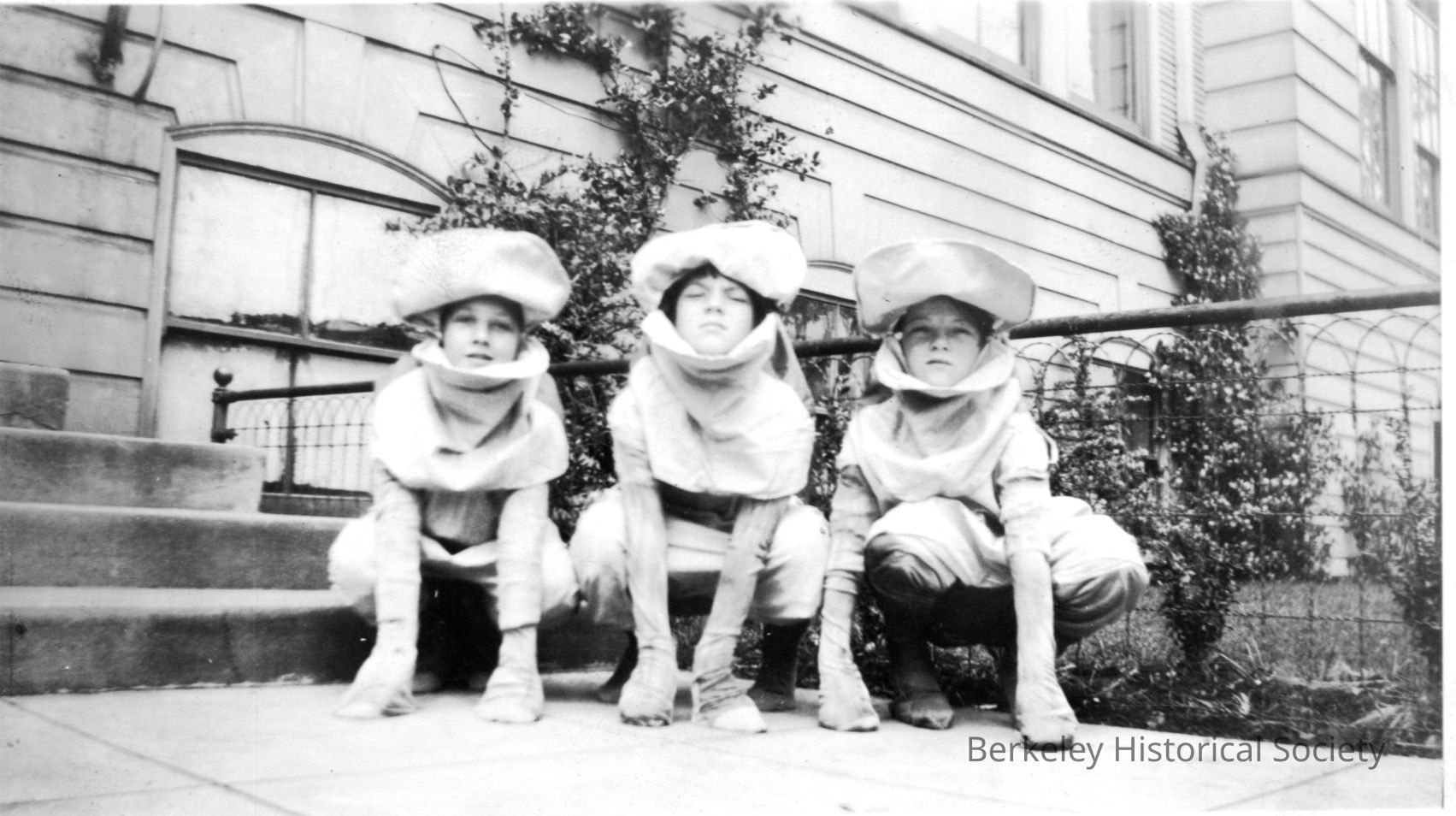 Three students in costume crouched down with hands on pavement.Other Names and Numbers