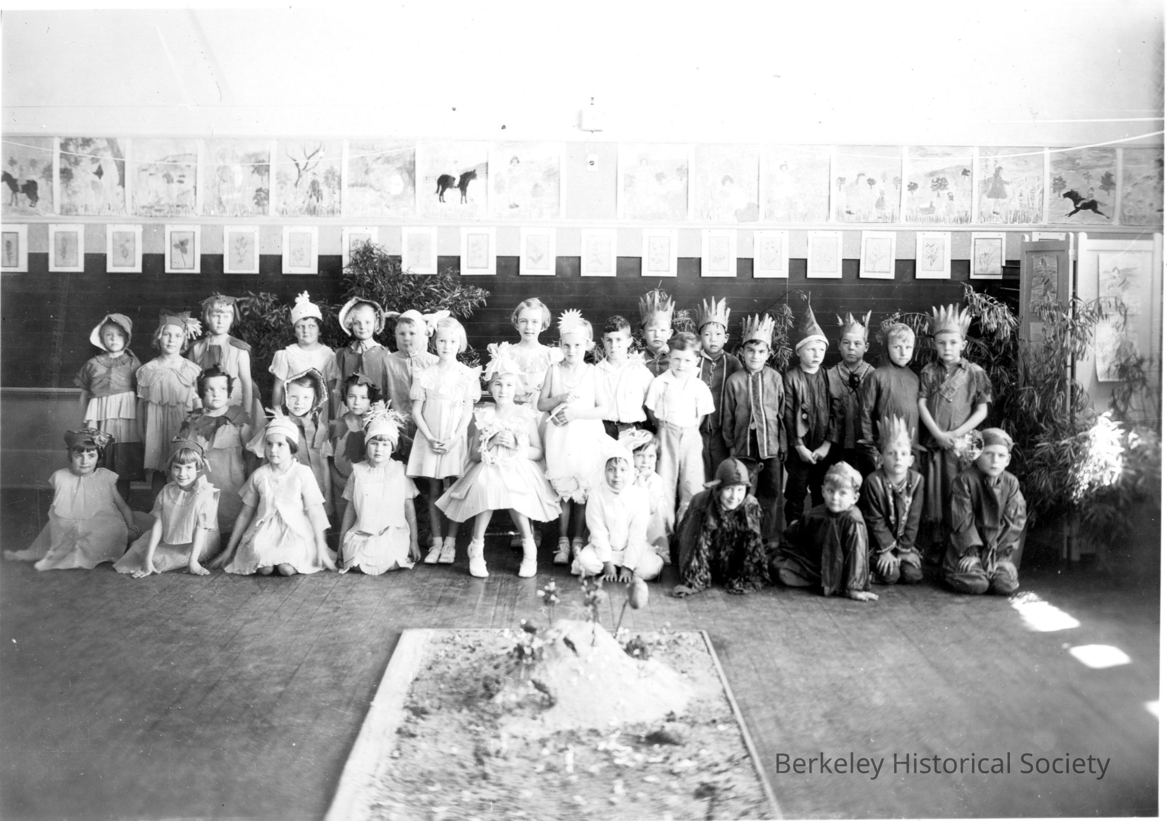 Class all in costumes, posed along classroom wall.Other Names and Numbers
