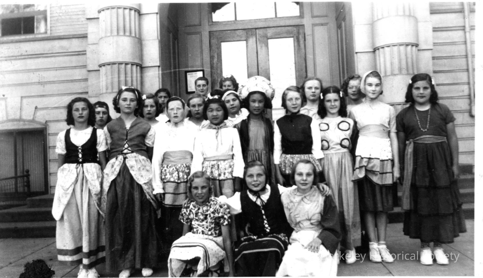 Students on steps of school, in costumes representing various cultures.Other Names and Numbers