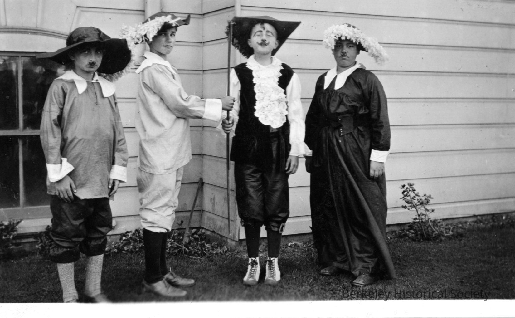 Four boys in costume with large hats, two with fake moustaches. "Directed by Miss McCarthy.'Other Names and Numbers