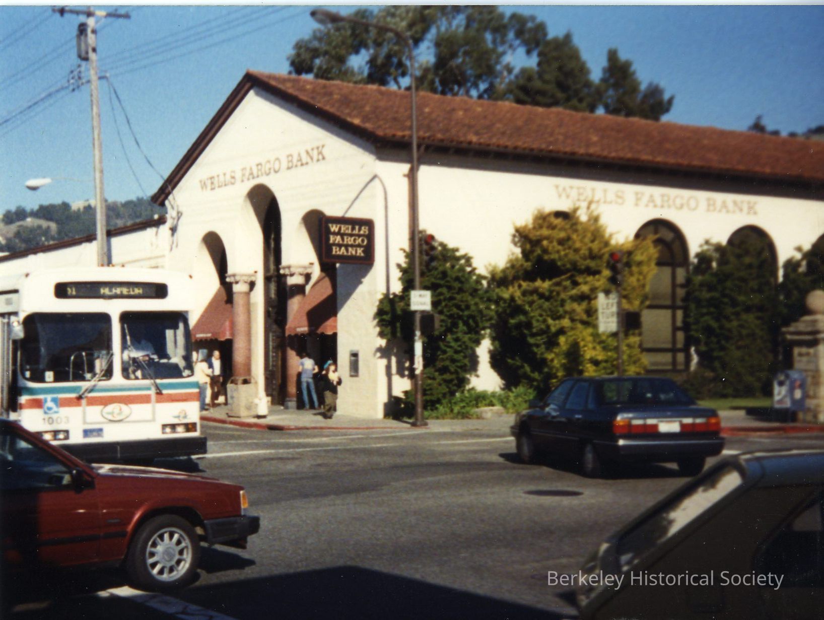 Building at College and Ashby Avenues seen across intersection, with many vehicles.