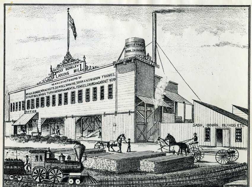 Illustration of West Berkeley Planing Mill. Print from unknown source.Made/Created