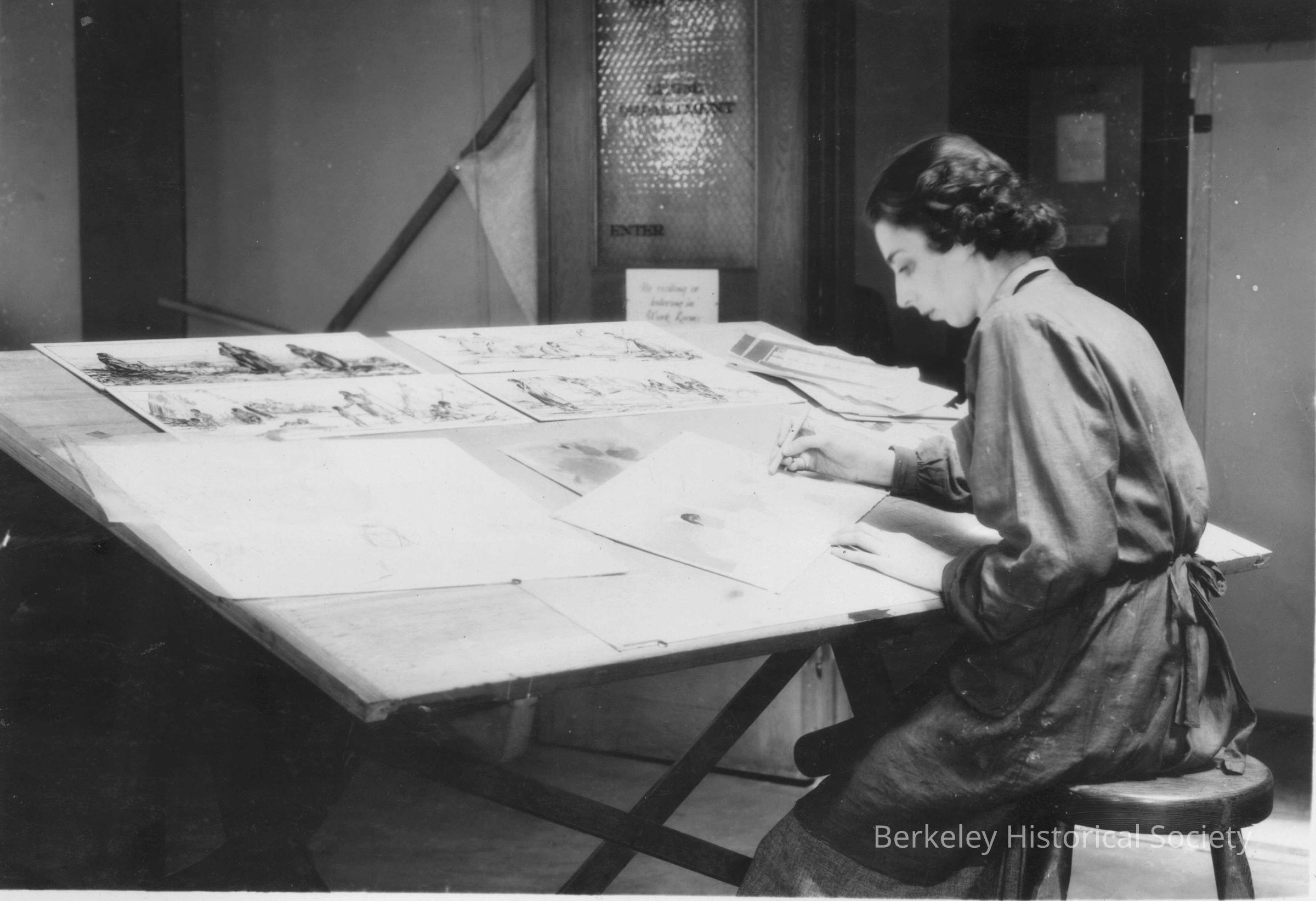 Artist Elizabeth Ginno at her drawing board for National Parks Museum Project