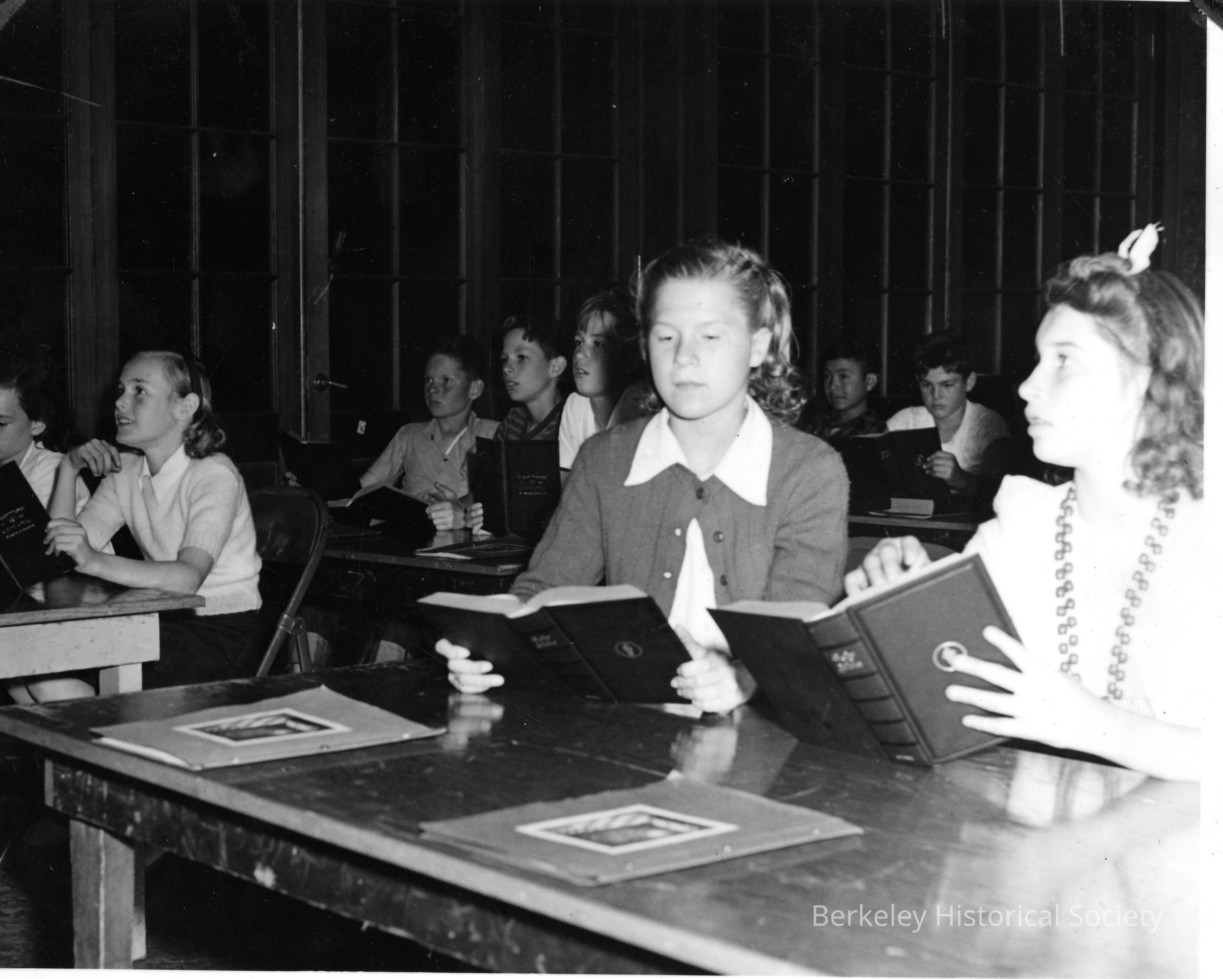 Two girls reading Bible, other students in background.Other Names and Numbers