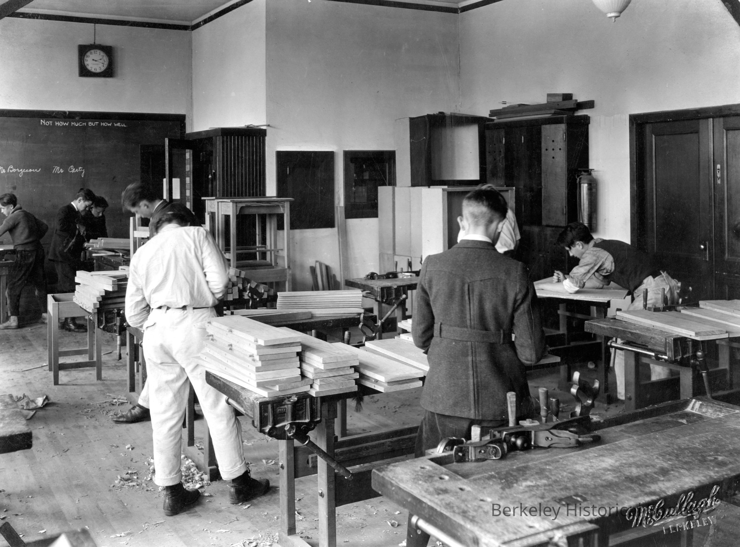 Students in woodshop making school desks.