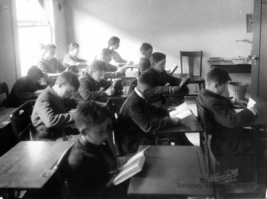 Students at desks, reading.