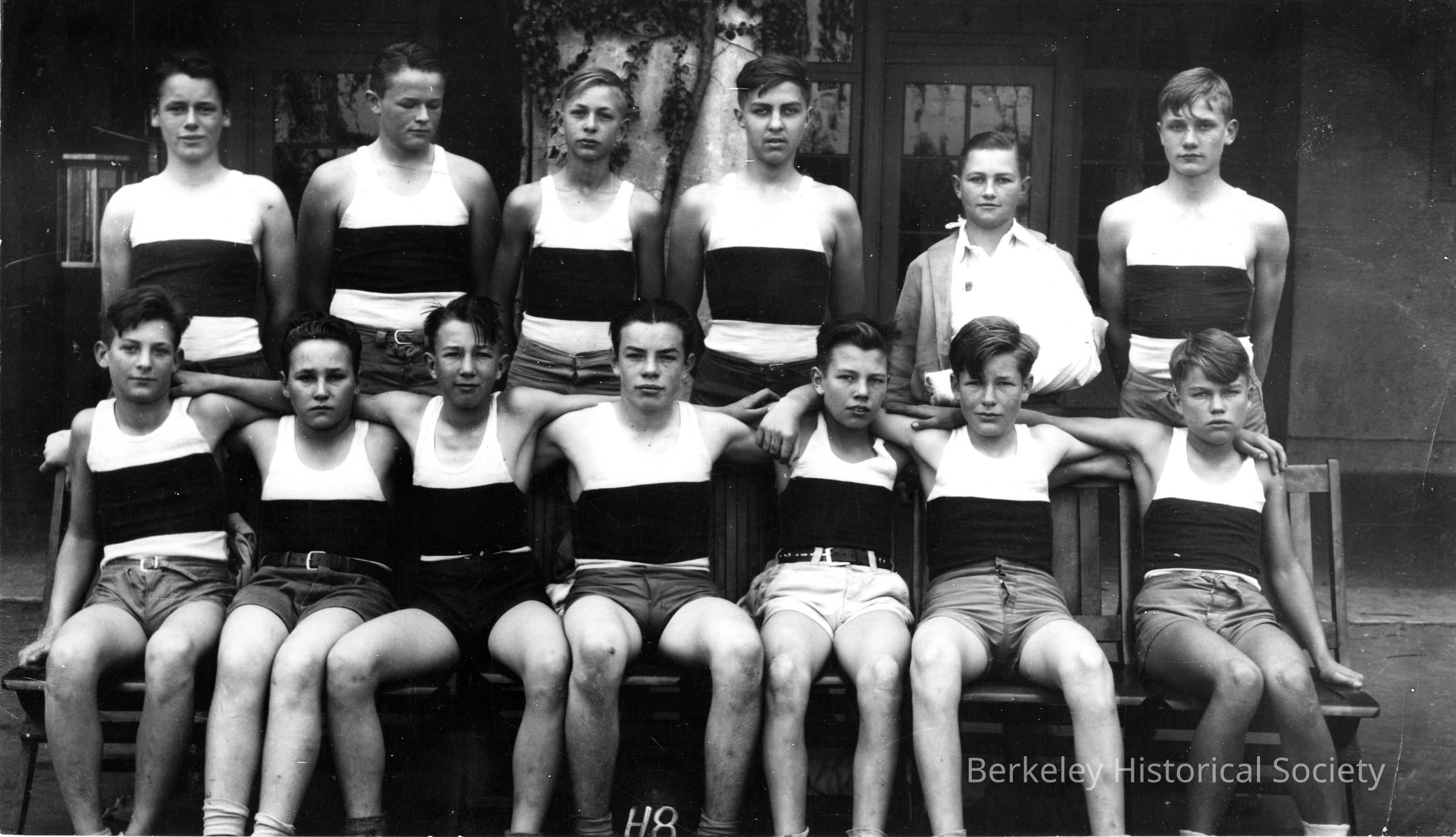 Group portrait of volleyball team. 'H8' at bottom of photo