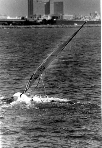 Windsurfer capsizes