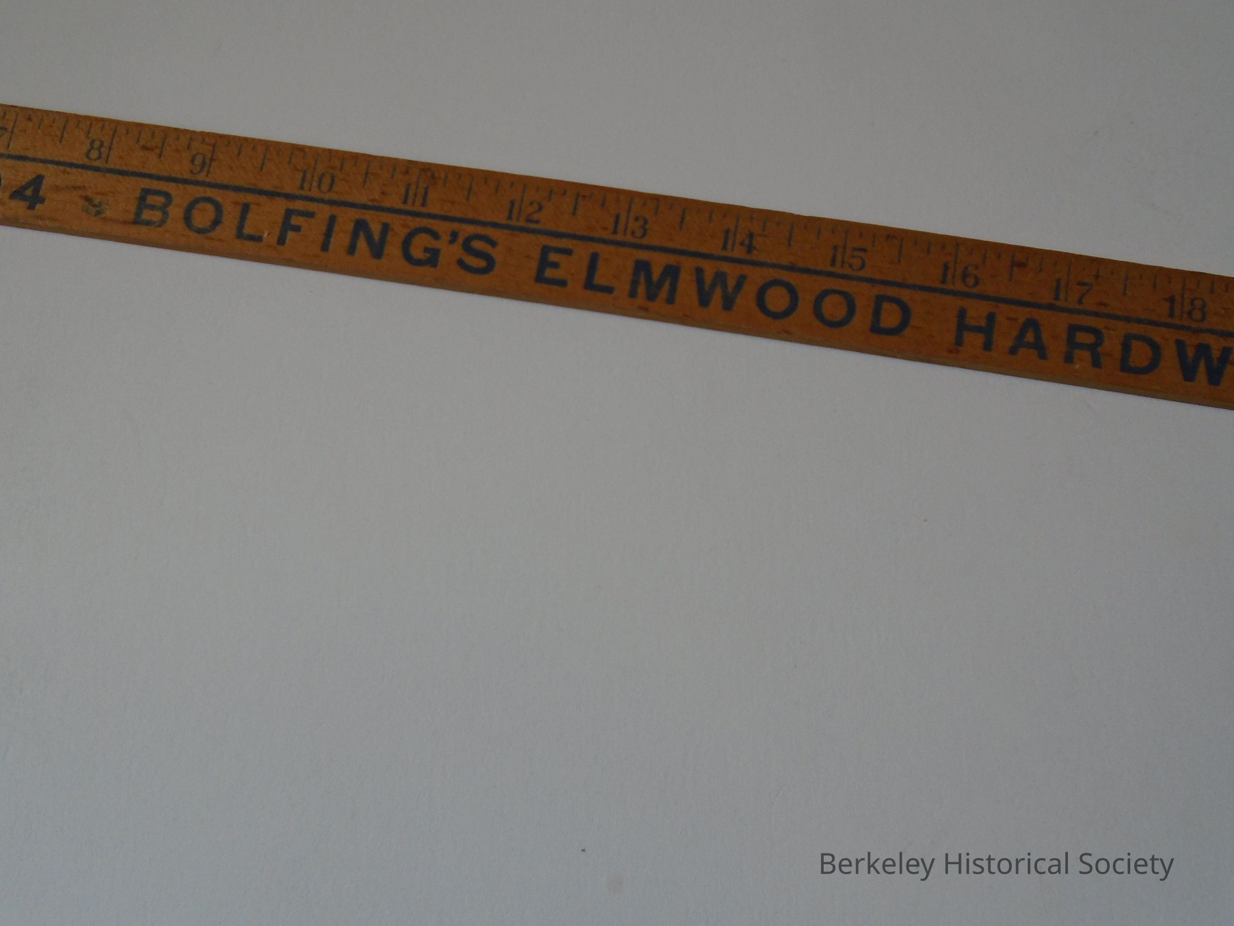 Wood yardstick, 36" with "BOLFING'S ELMWOOD HARDWARE, 2951 College Ave. at Ashby Berkeley. Dial 843-3794" printed on both sides.