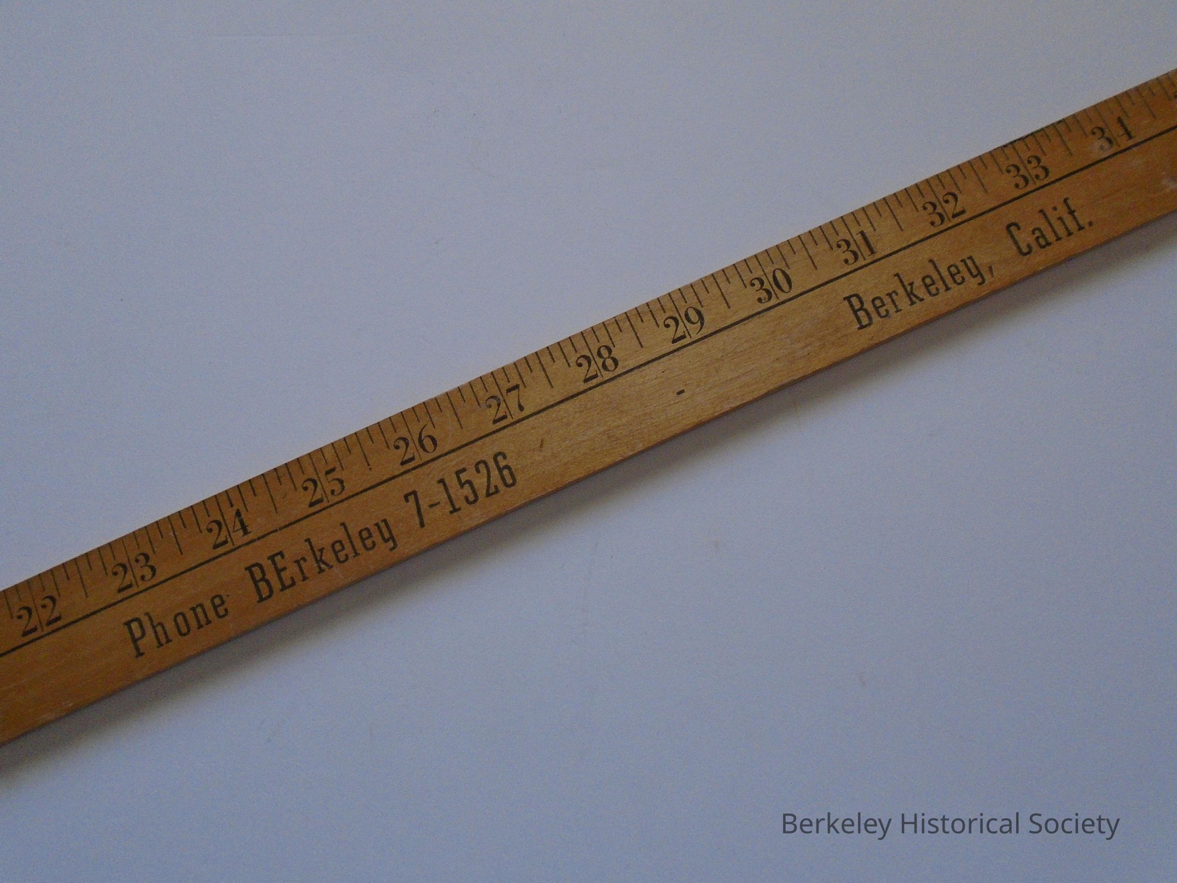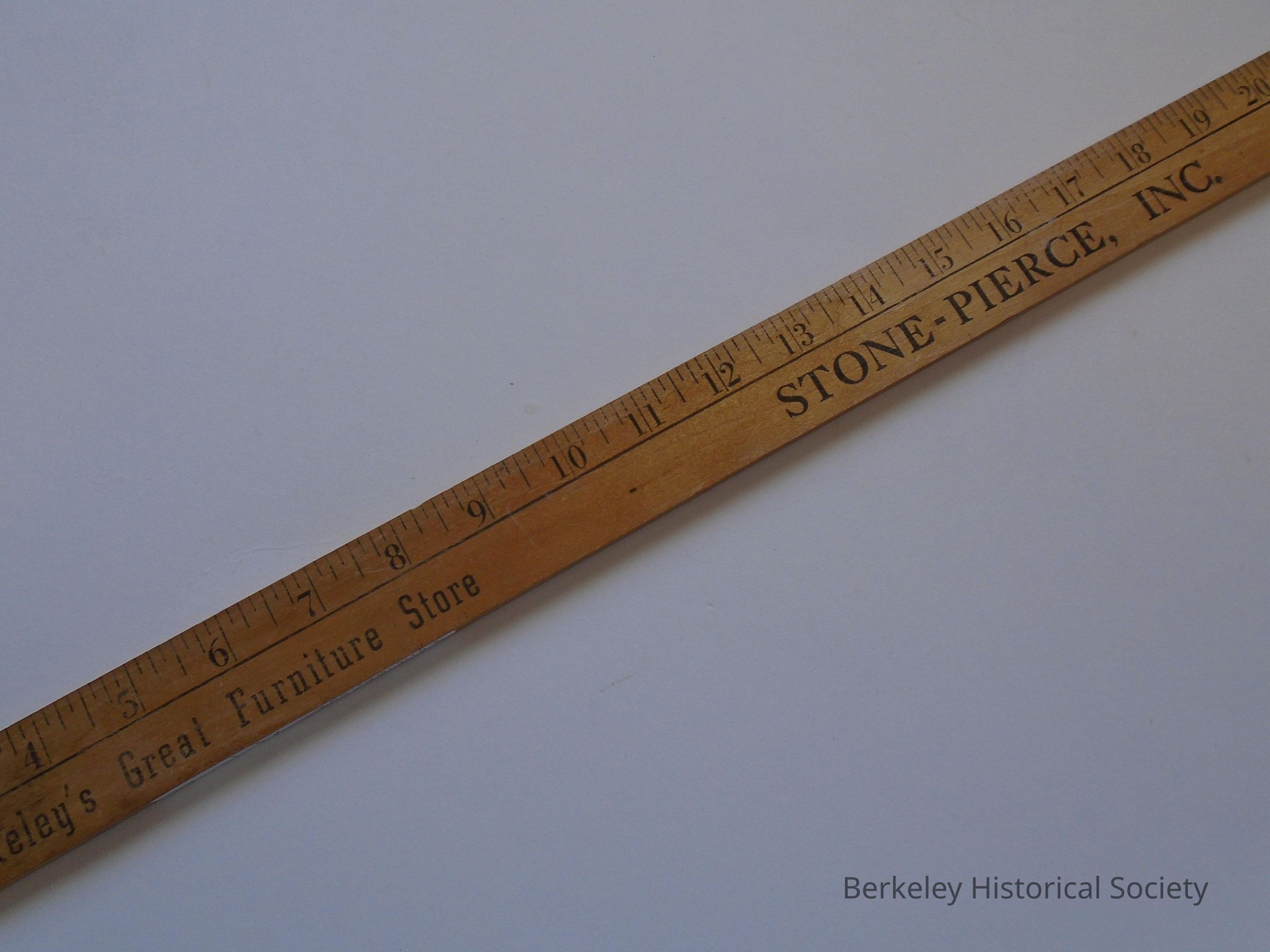 Wood yardstick advertising Stone-Pierce, Inc., Berkeley's Great Furniture Store. Phone BErkeley 7-1526, Berkeley, Calif.