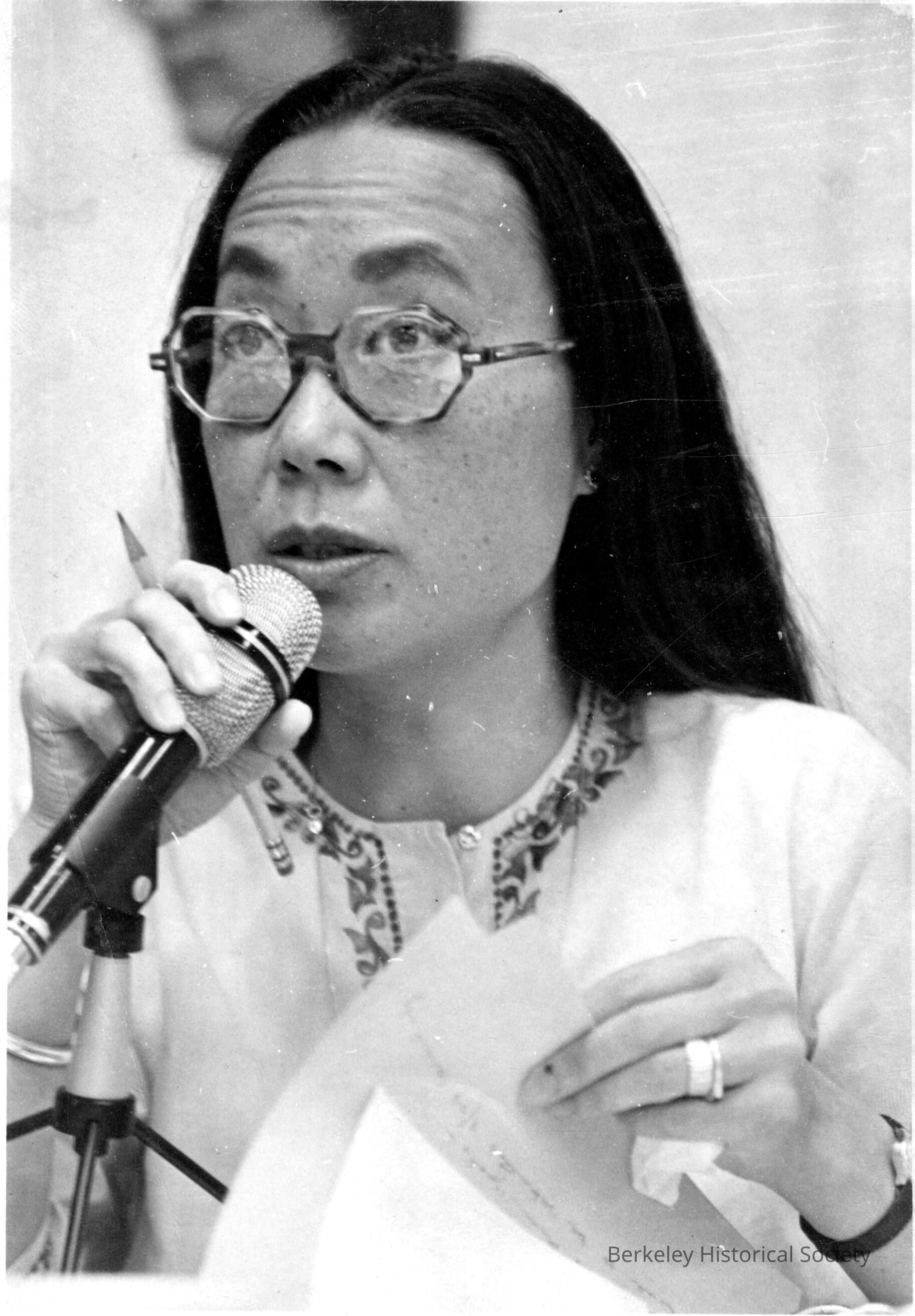 At a City Council meeting; holding microphone.Made/Created