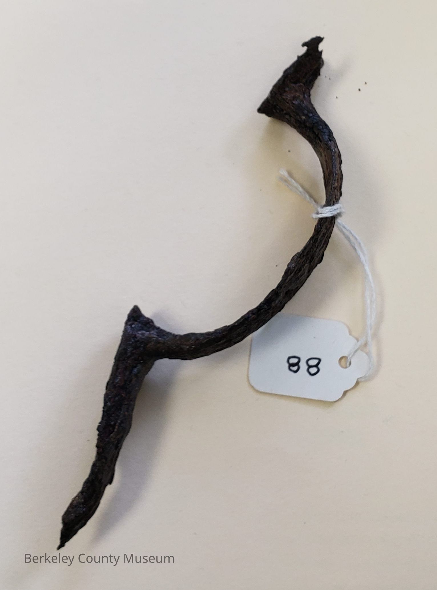 The image shows a rusted trigger guard with a tag labeled "88" attached to it.