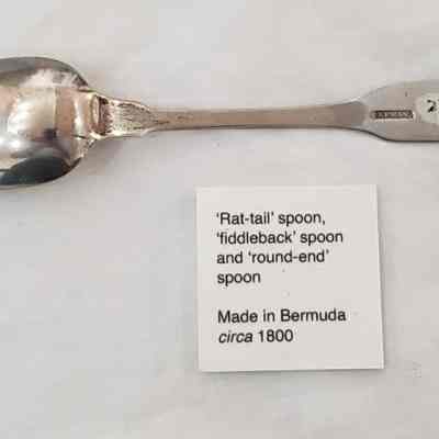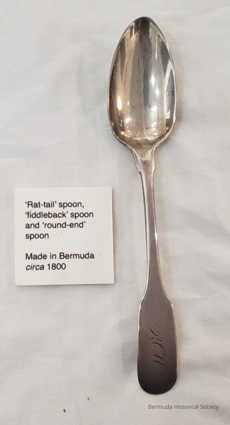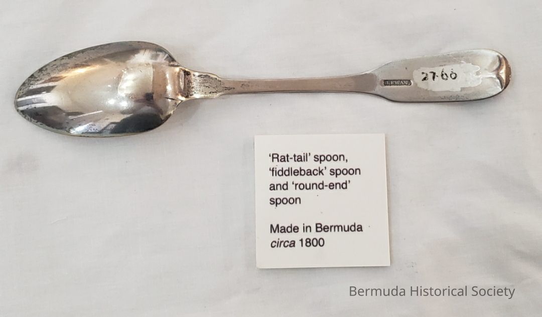 1 dessert spoon, 27.66. M# 247. Donated by the late Major Ian C. Morgan; RCW on handle; Stamp J Ewan