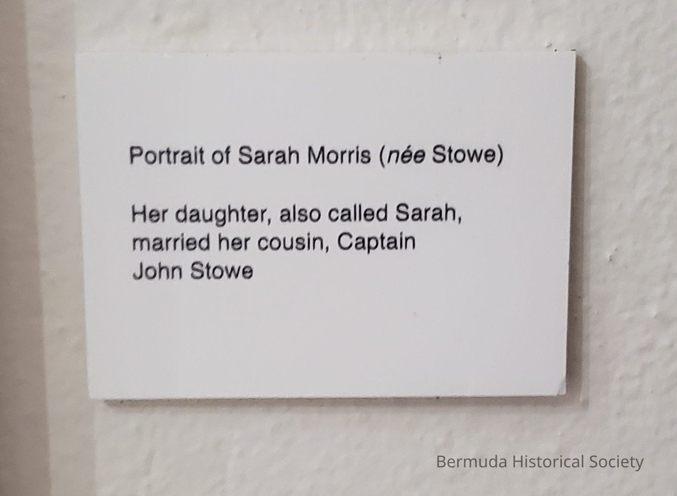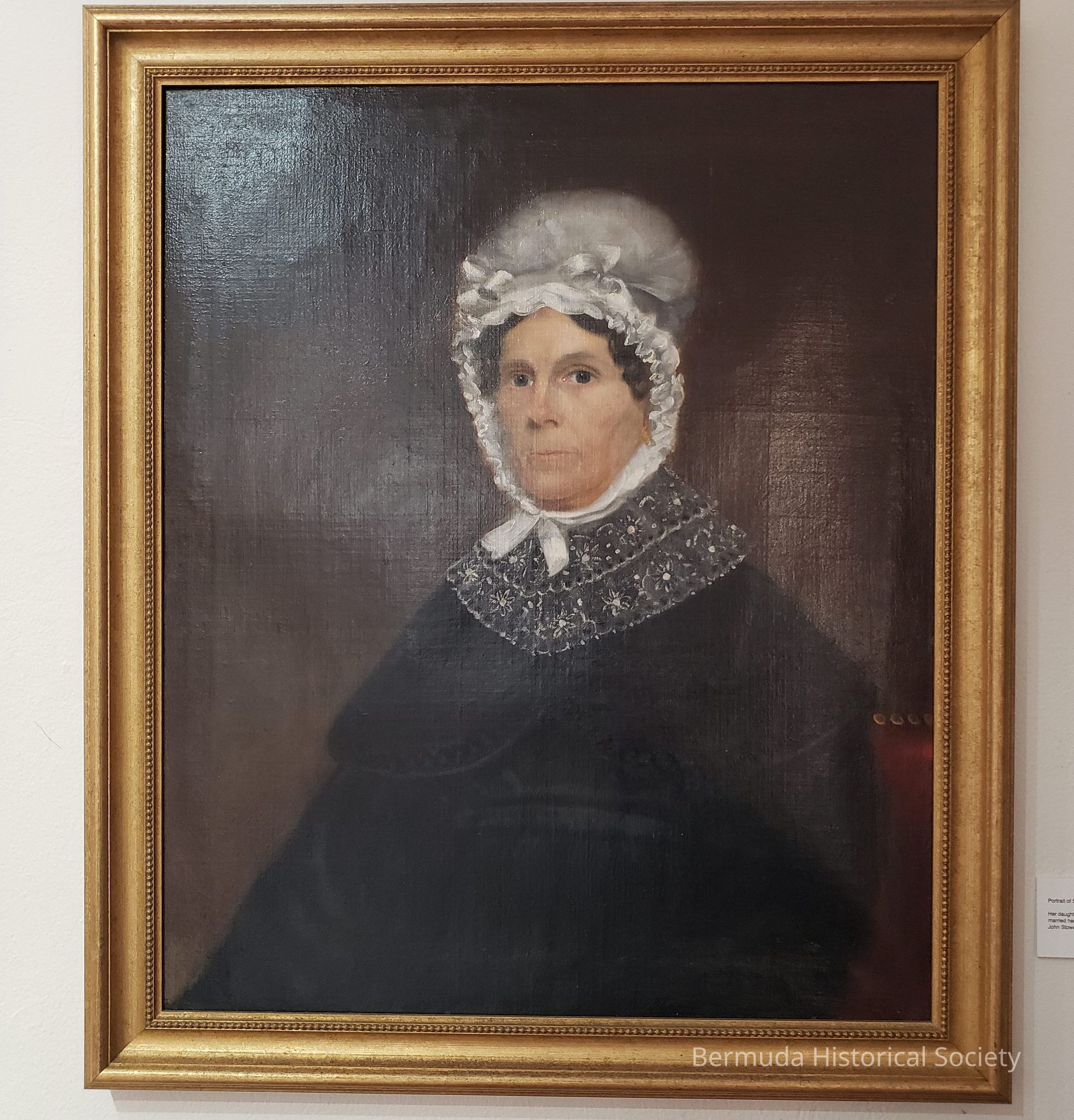Her daughter, also called Sarah, married her cousin, Captain John Stowe. On display in Somers Room.