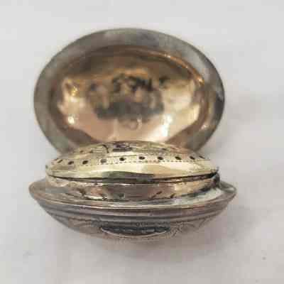 1 vinaigrette, small, nutmeg-shaped, English, Georgian, 18th-century.