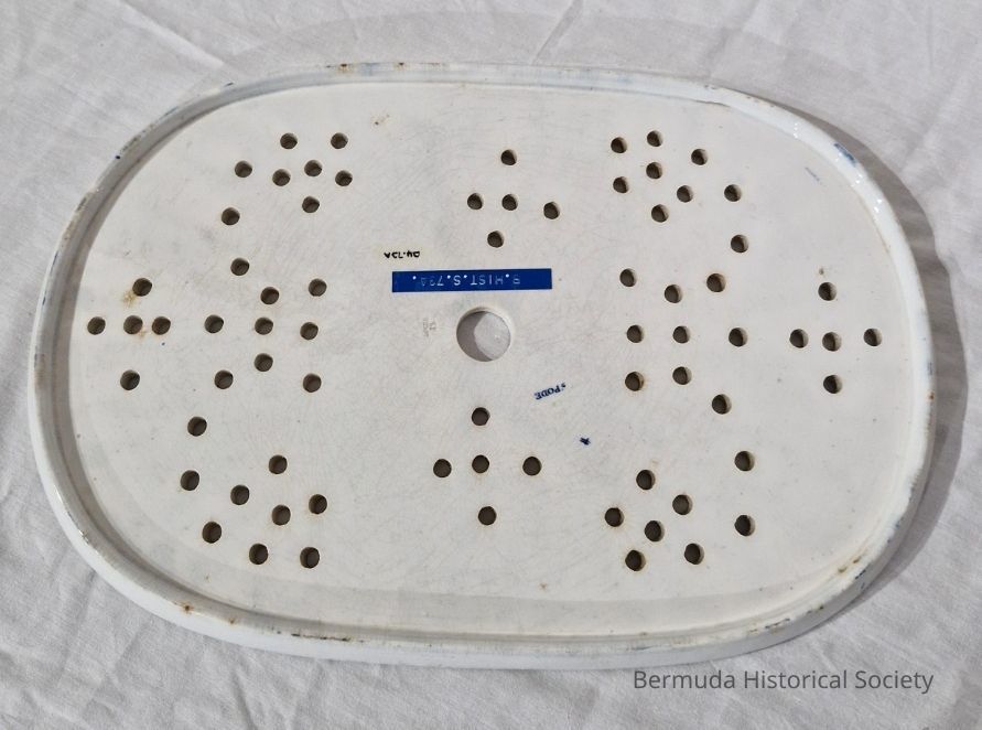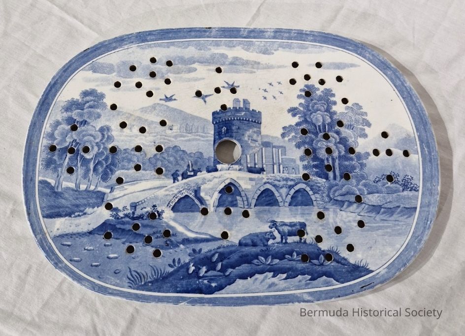 1992.04.42 Dish strainer. By Spode. Last valued by Colin Cooke (valuation # 146). No value assigned. B. Hist. S. 73A.