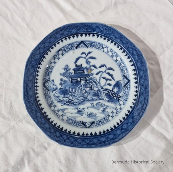 1992.04.13 Bread and Butter plate. Nanking design. Last valued by Colin Cooke (valuation # 141) at $75. B. Hist. S. 87. From the Misses Reas. Chinese export, Nanking ware, c1800.
