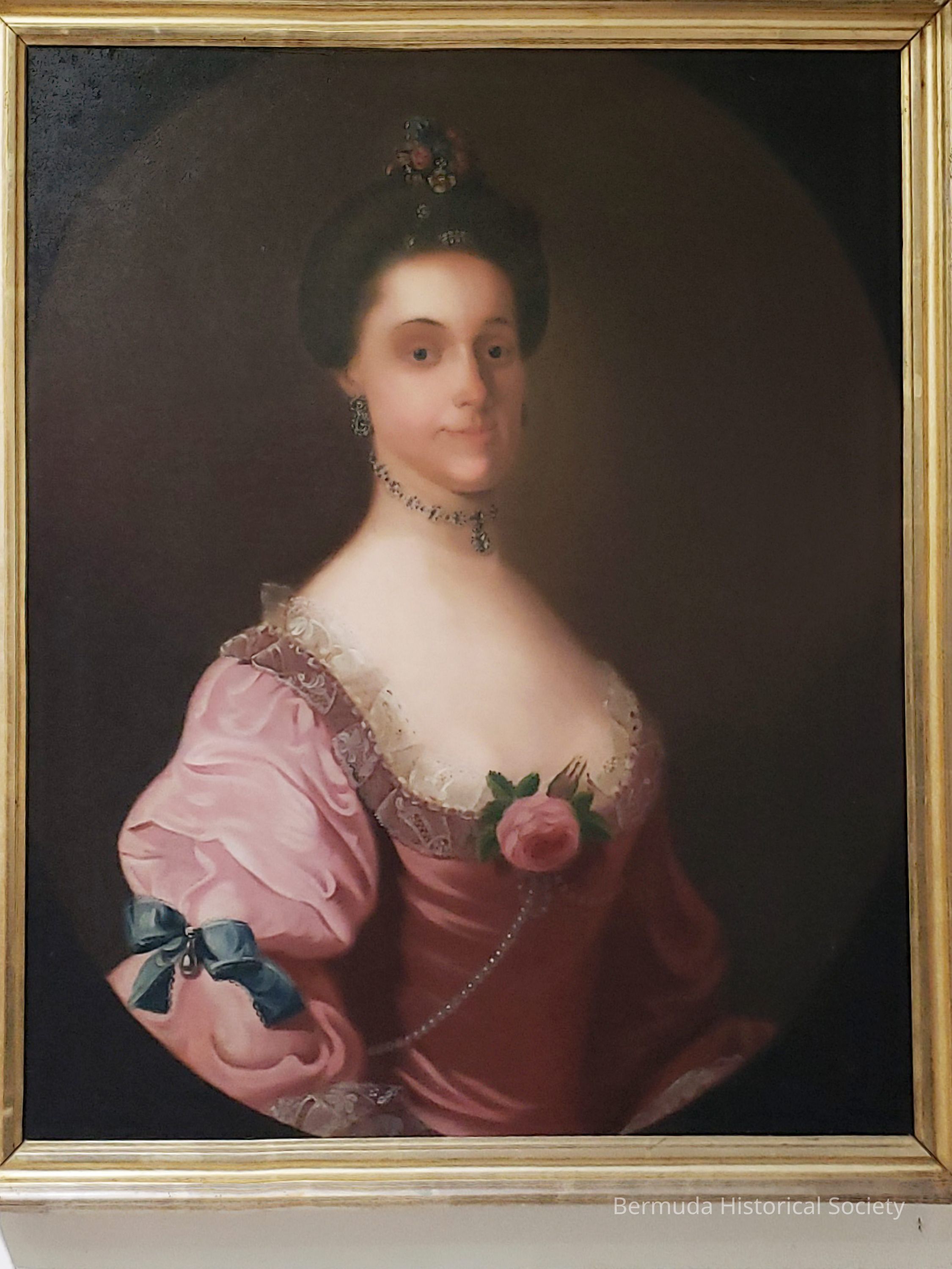 Miss Ann B. Hinson (Mrs Burch). Donated by Mrs. Charles Pitman (nee Hinson) from John Hinson. Oil painting, 29.5 x 24.5, in 32.35 x 27.5 frame, no glass. B. Hist. S. 08. In dining room.