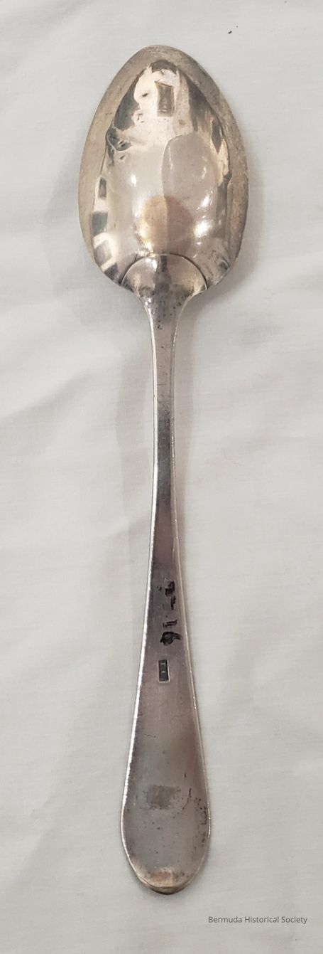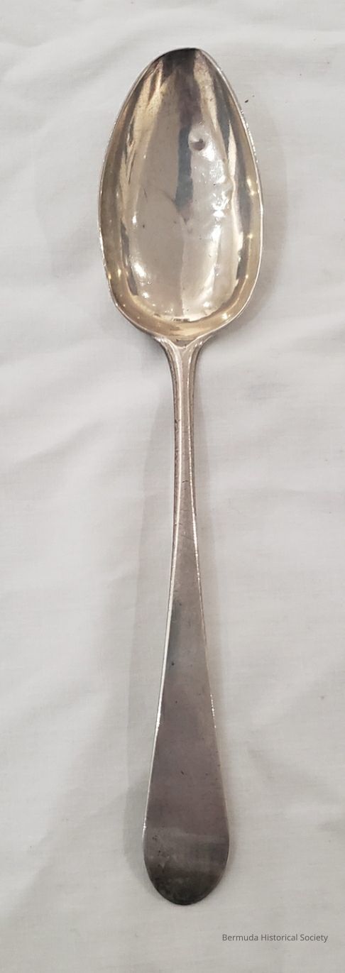 1992.27.13 1 serving spoon, 27.16. M. 158. Donated by the late Major Ian C. Morgan
