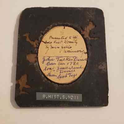 John Tucker Darrell in silhouette. Son of James and Sarah Darrell.Relationships