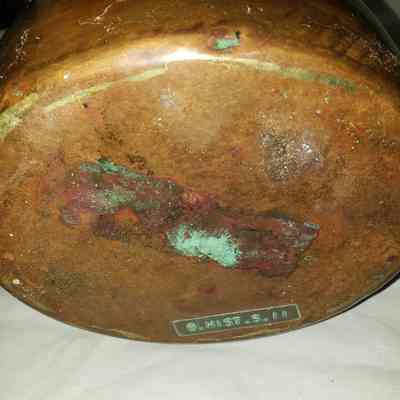Copper kettle with removable lid and fixed (non-moving) handle.