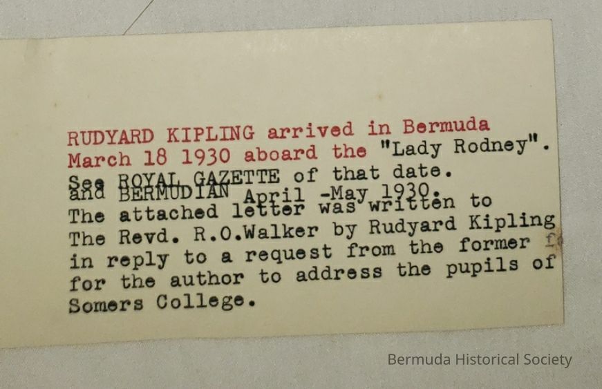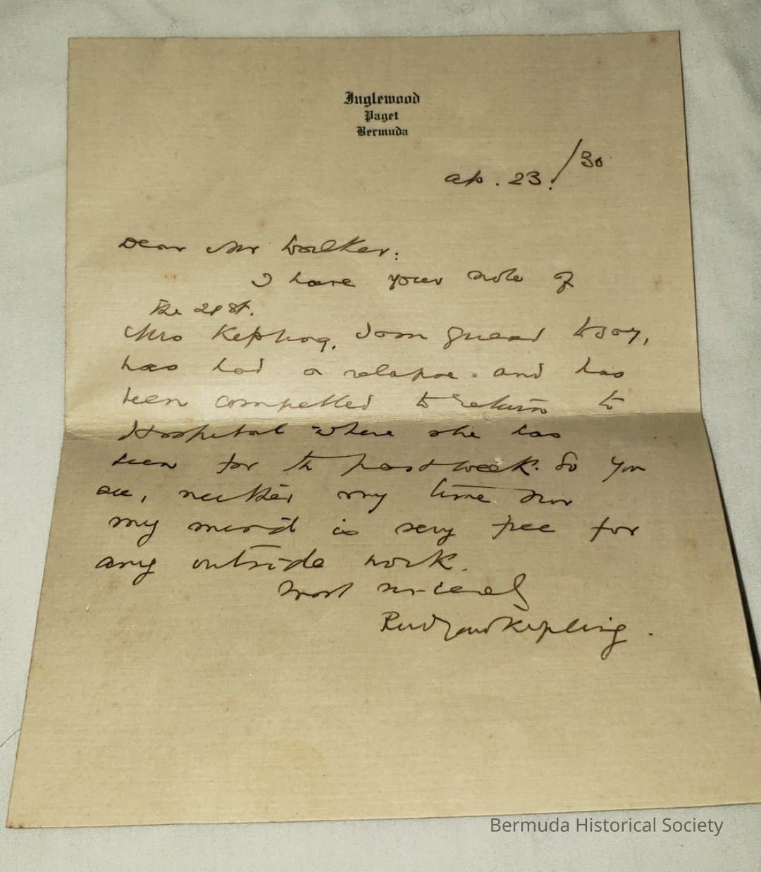 Handwritten Letter From Rudyard Kipling to Rev. R. O. Walker