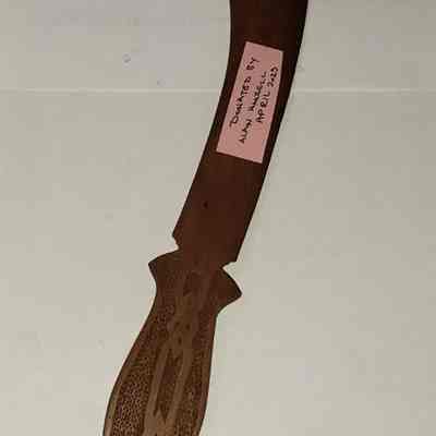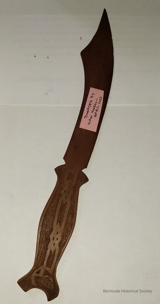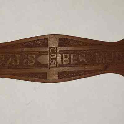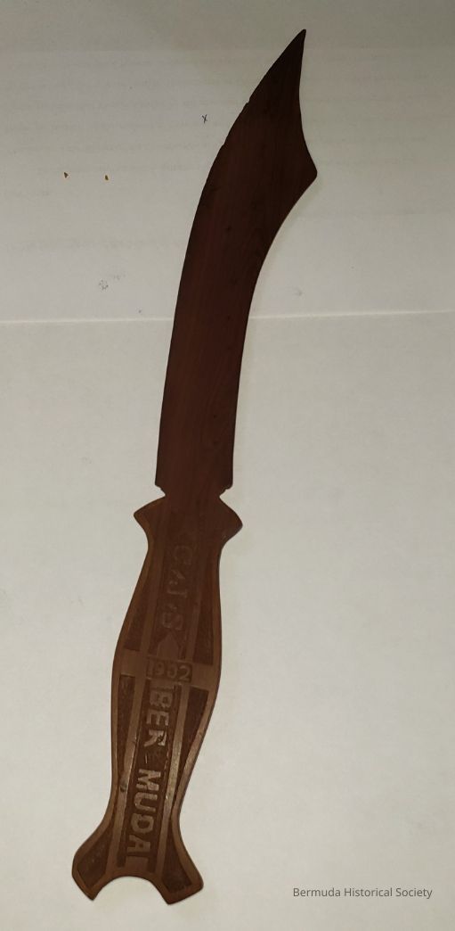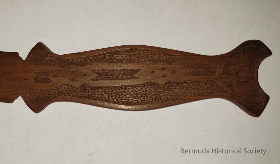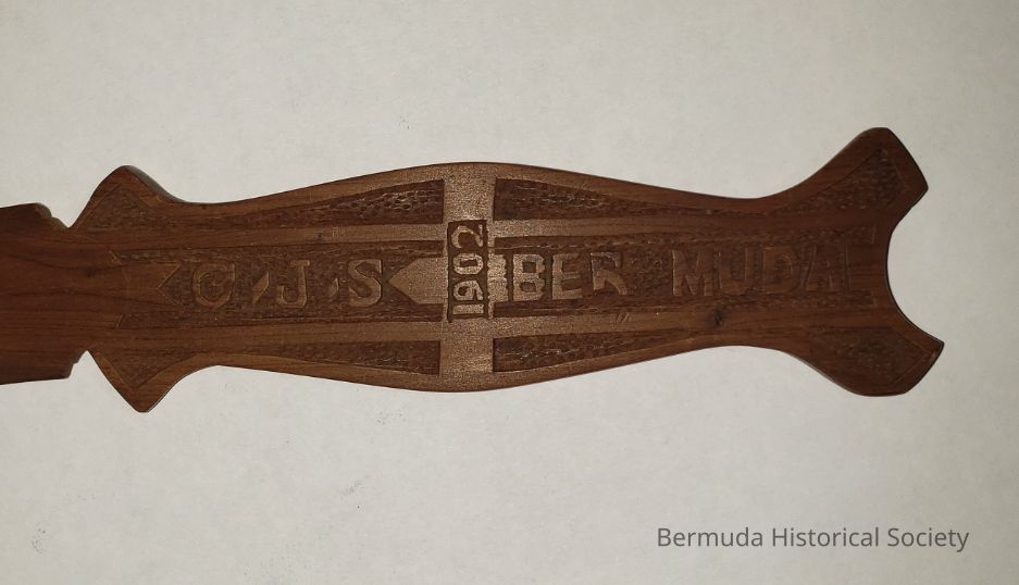 Carved from Bermuda cedar. Inscribed with C.J.S. 1902 Bermuda. Donated by Alan HANSELL Apr-2023.