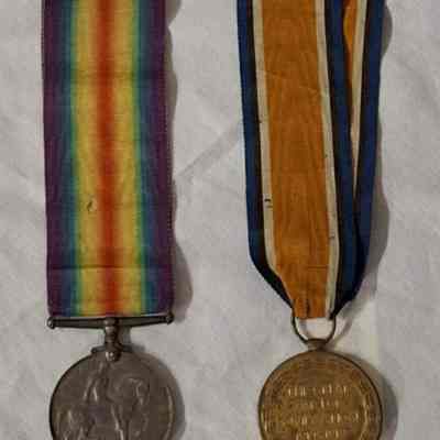 Pair of medals - British War Medal and The Victory Medal. Commonly known as Mutt and Jeff when worn together. Ribbons are on the wrong medals.Cataloged By