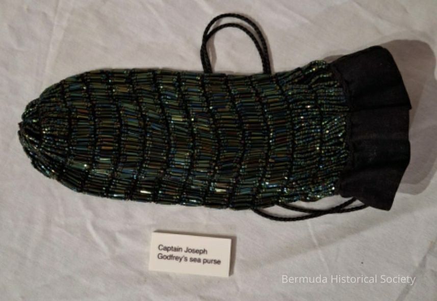 Captain Joseph Godfrey's Purse. Circa 1850. On loan to the Society from Mr. John Cox of Orange Valley, Devonshire. In display cabinet, North Exhibition Room. (Moved to Miscellaneous in 2023 Inventory).