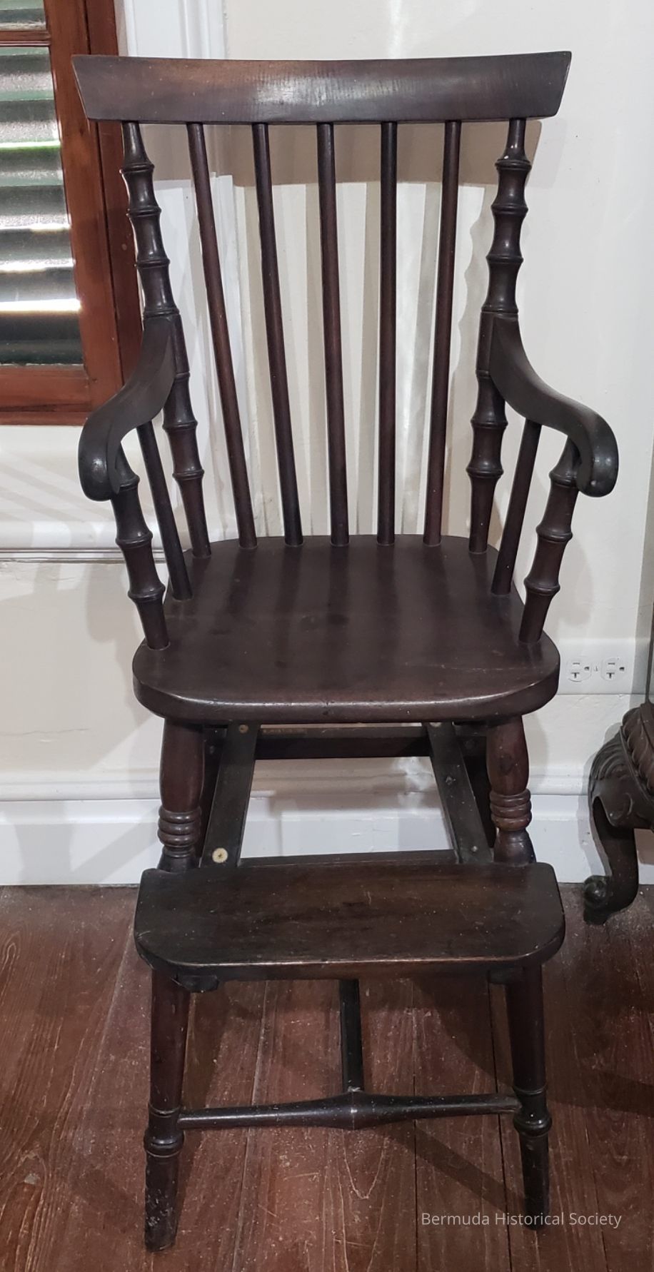 CHILD'S OPEN HIGH CHAIR. Mahogany. From the late 19th century. B. Hist. S. 38. In Dining Room.