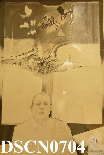 Graphite, paint and ink. Black and gray. Image 40" x 26 1/2" bleeds to edge of charcoal paper. Signed lower right.Artwork Details