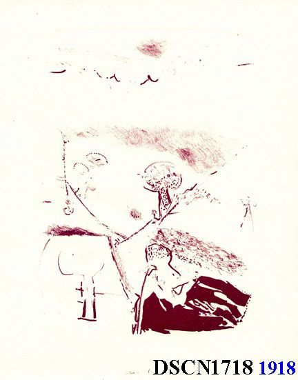 Lithograph. Maroon and white. Image 8" x 5 1/2" on 10" x 8" Rives BFK paper.Made/Created